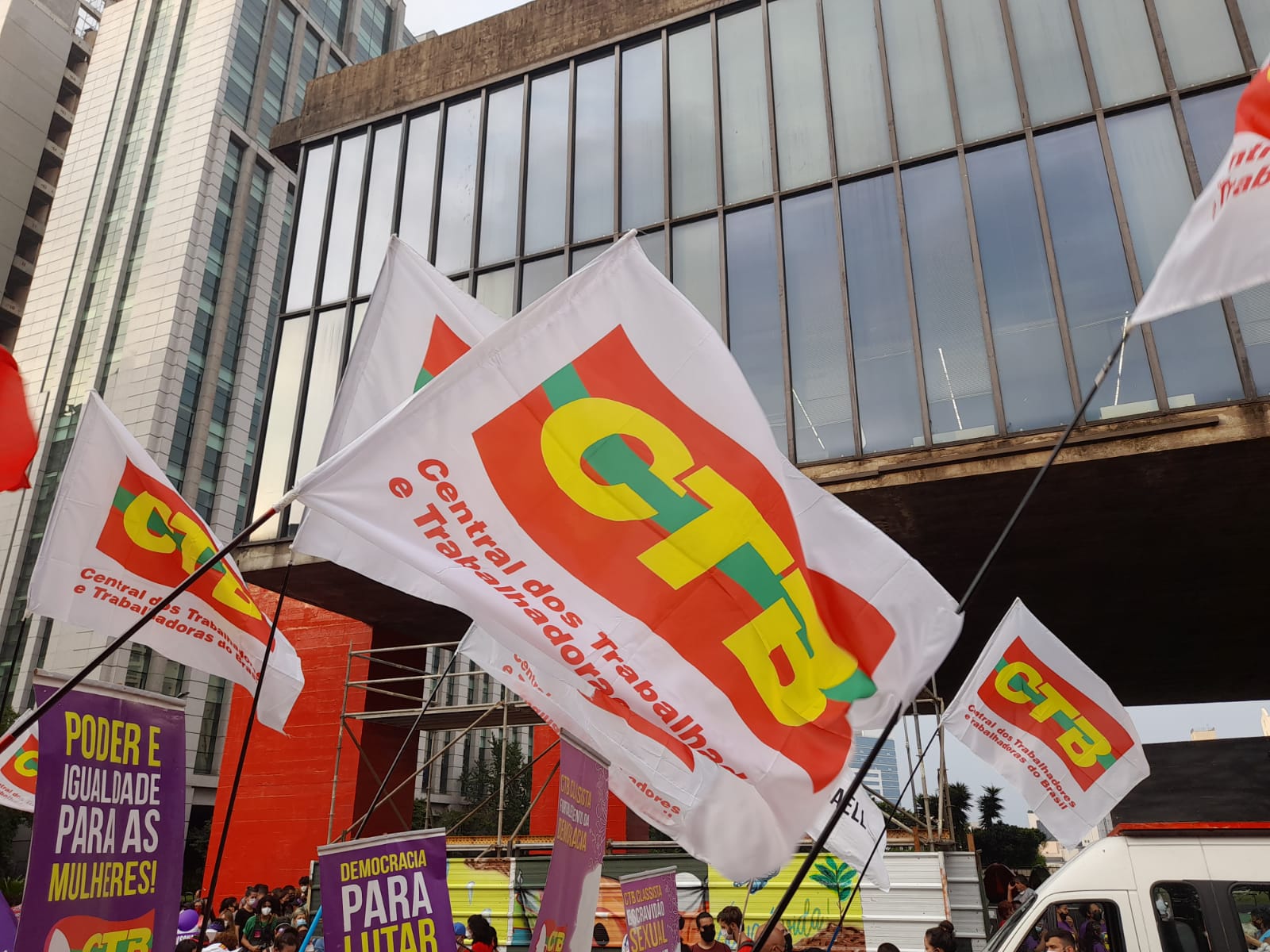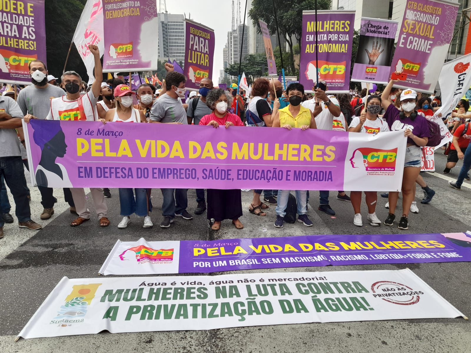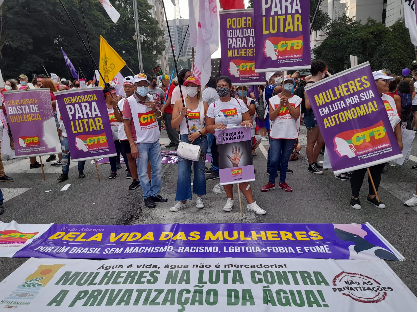 Em São Paulo, a manifestação começou às 16h com a concentração na frente do MASP, na Avenida Paulista, e reuniu mulheres do Sintaema, CTB São Paulo, movimentos sociais, feministas, lideranças políticas e outras personalidades.