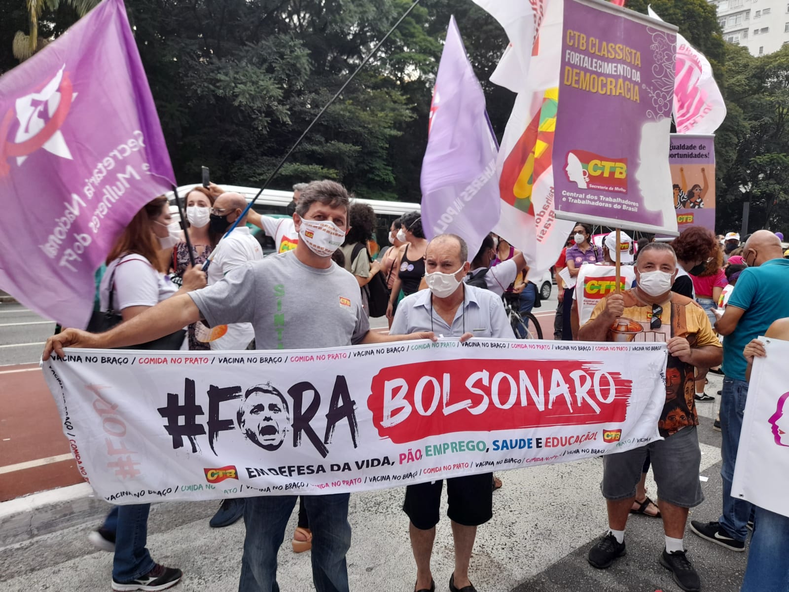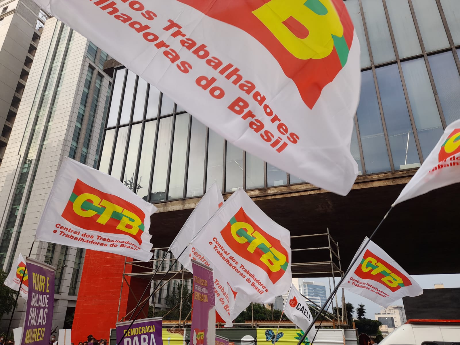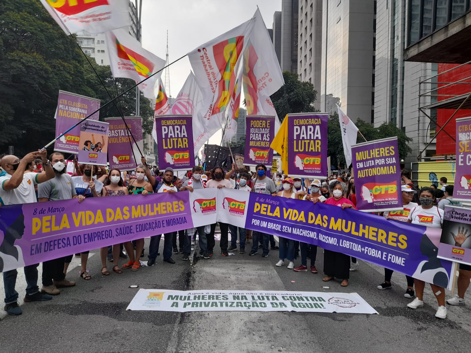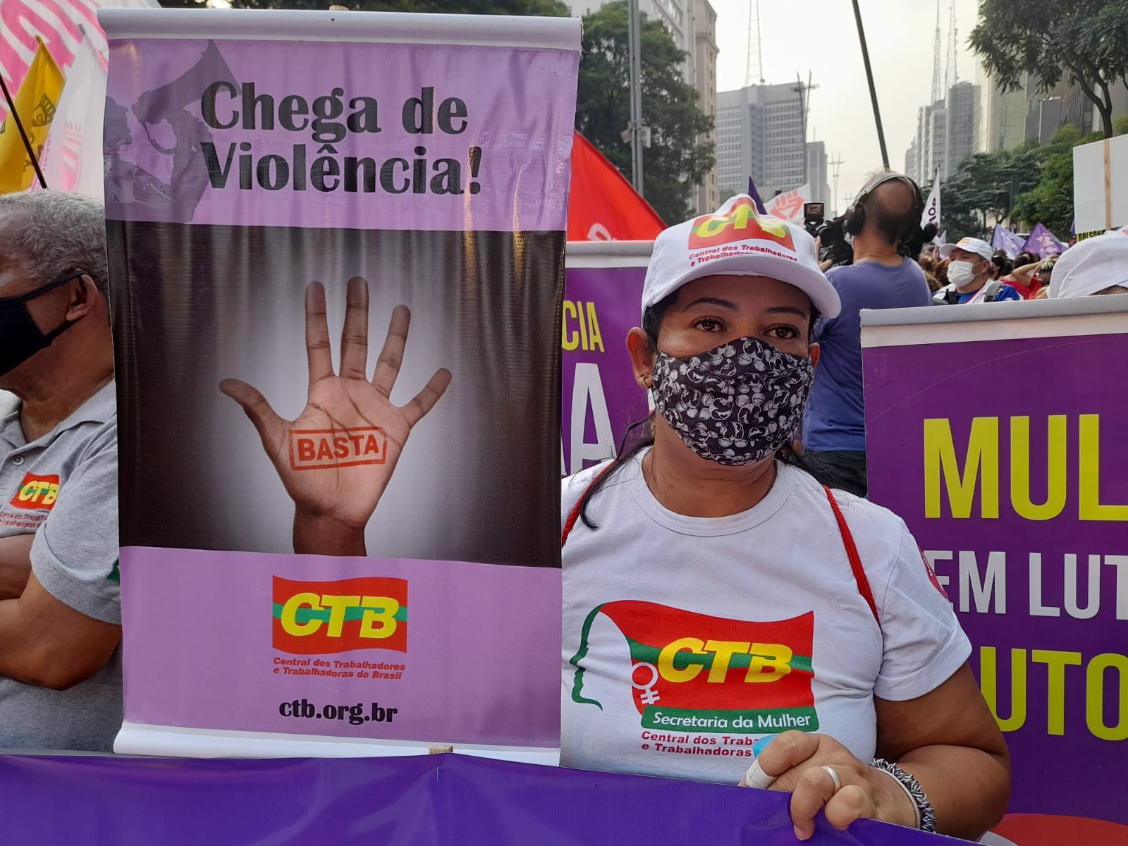 Em São Paulo, a manifestação começou às 16h com a concentração na frente do MASP, na Avenida Paulista, e reuniu mulheres do Sintaema, CTB São Paulo, movimentos sociais, feministas, lideranças políticas e outras personalidades.