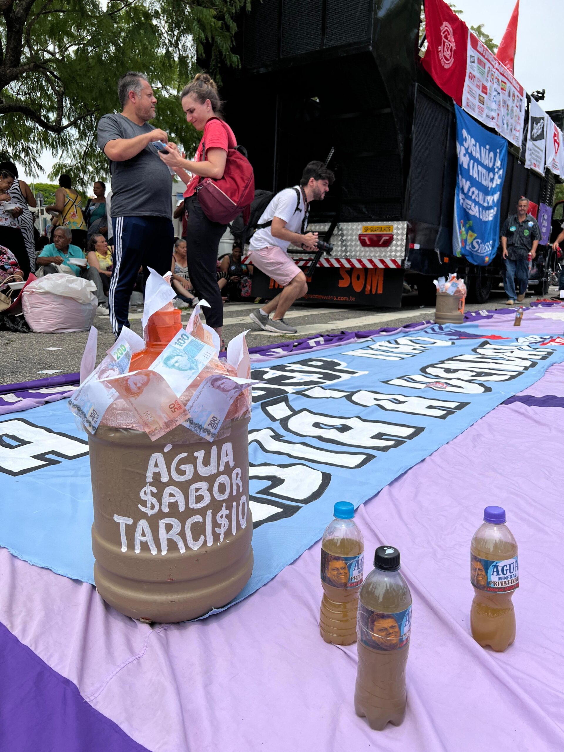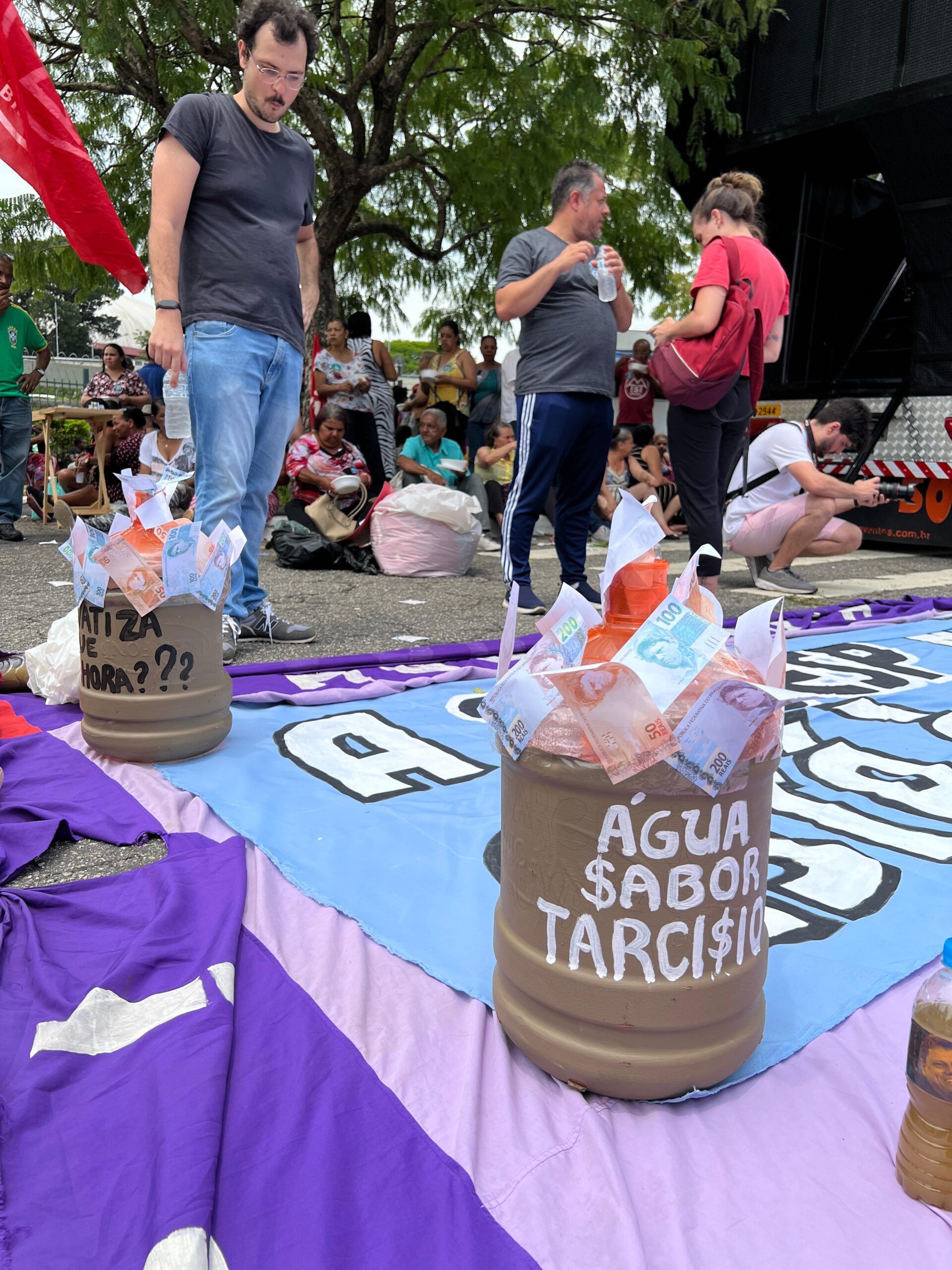 Os manifestantes também assistiram a audiência pública, que aconteceu no mesmo dia, para debater o PL da privatização da Sabesp. A audiência aconteceu no plenário Juscelino Kubitschek e também foi transmitida através de um telão nos auditórios Paulo Kobayashi e Franco Montoro.