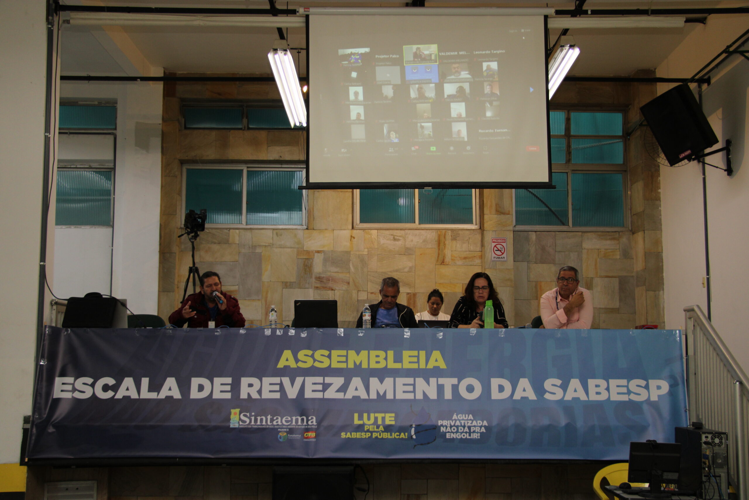 Os trabalhadores (as) da Sabesp aprovaram nesta terça-feira (8), em assembleia híbrida, na sede do Sintaema, a criação de uma comissão ampliada para debater a escala de revezamento da Sabesp nas bases e com a empresa.