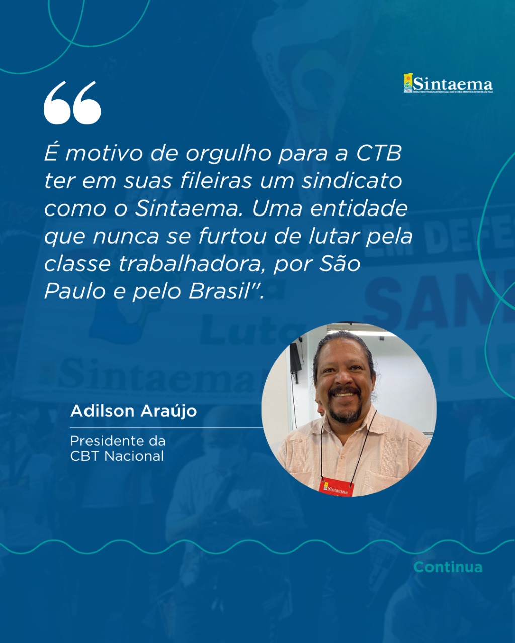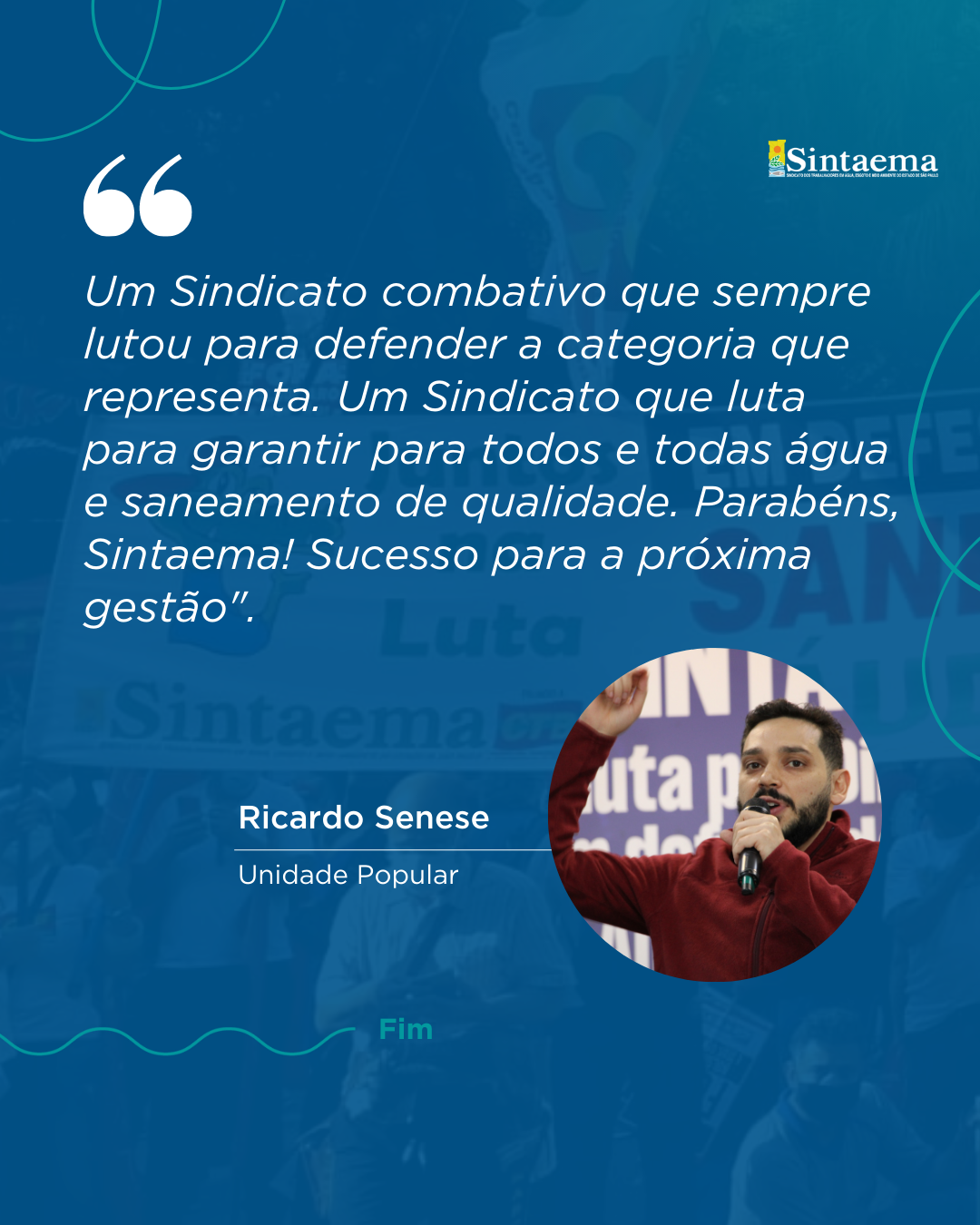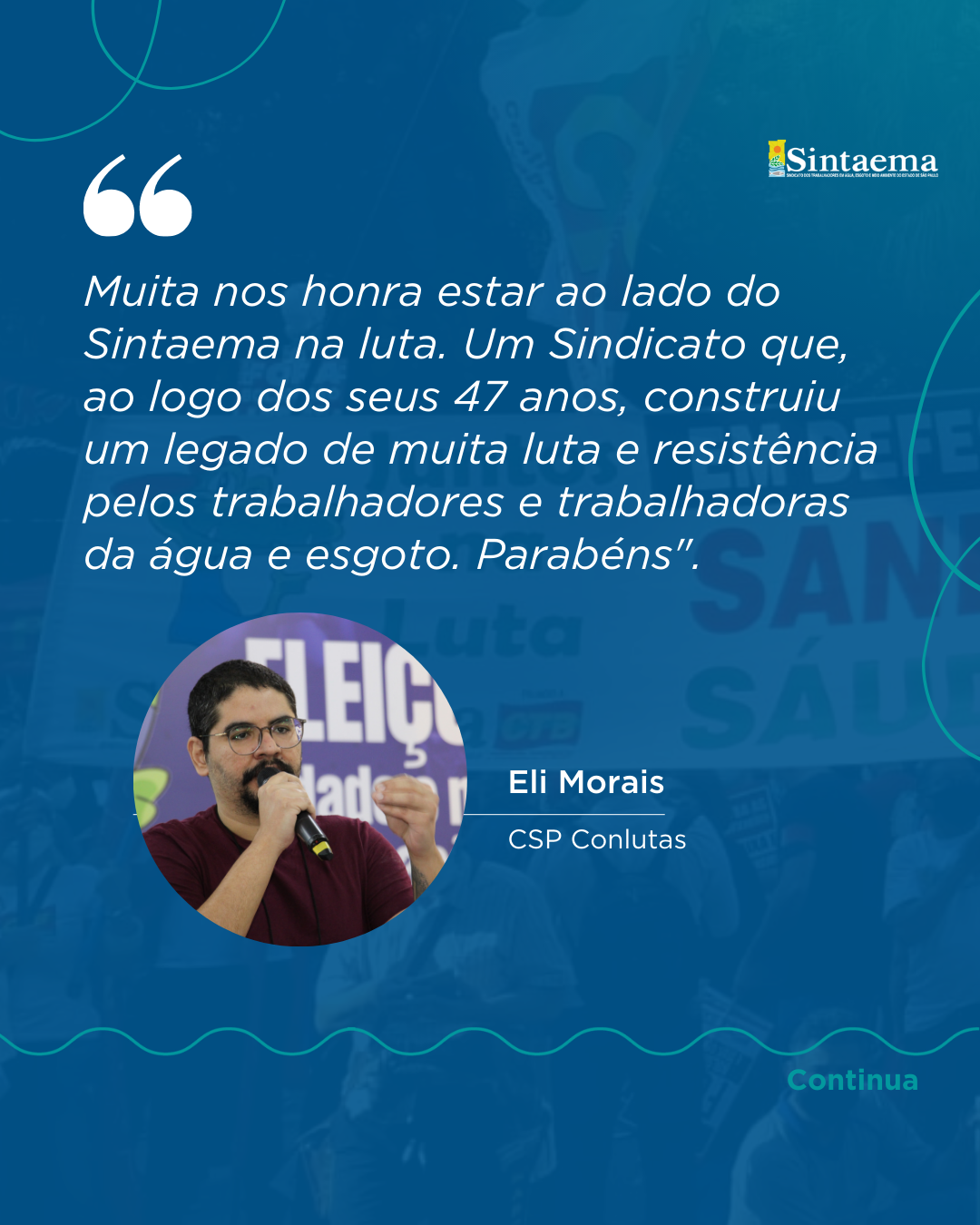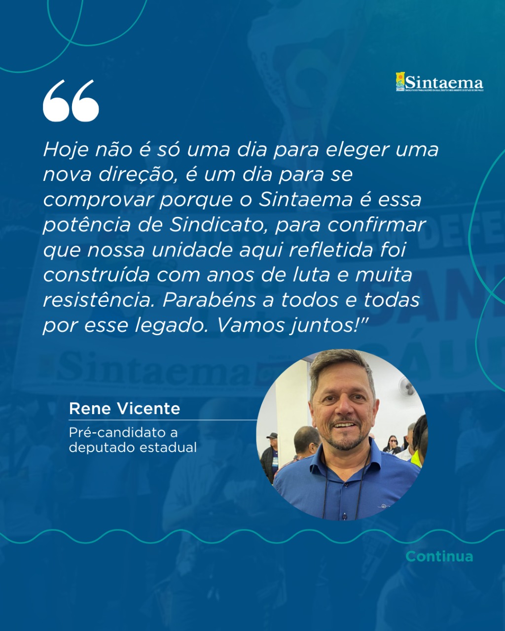 “47 anos de história que fizeram do Sintaema uma referência do movimento sindical no cenário nacional e que marchou e marcha na linha de frente das principais lutas em prol dos direitos da classe trabalhadora”.