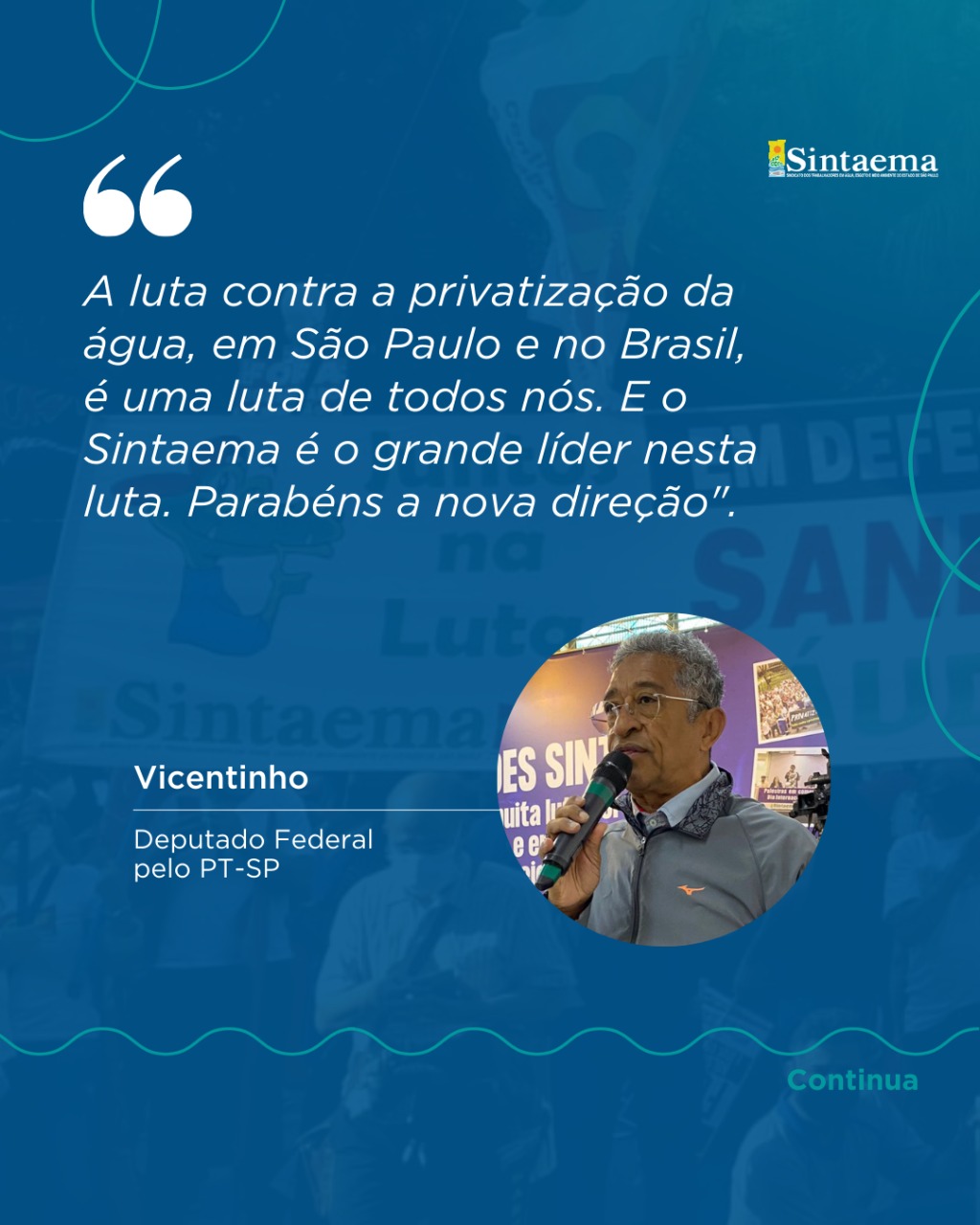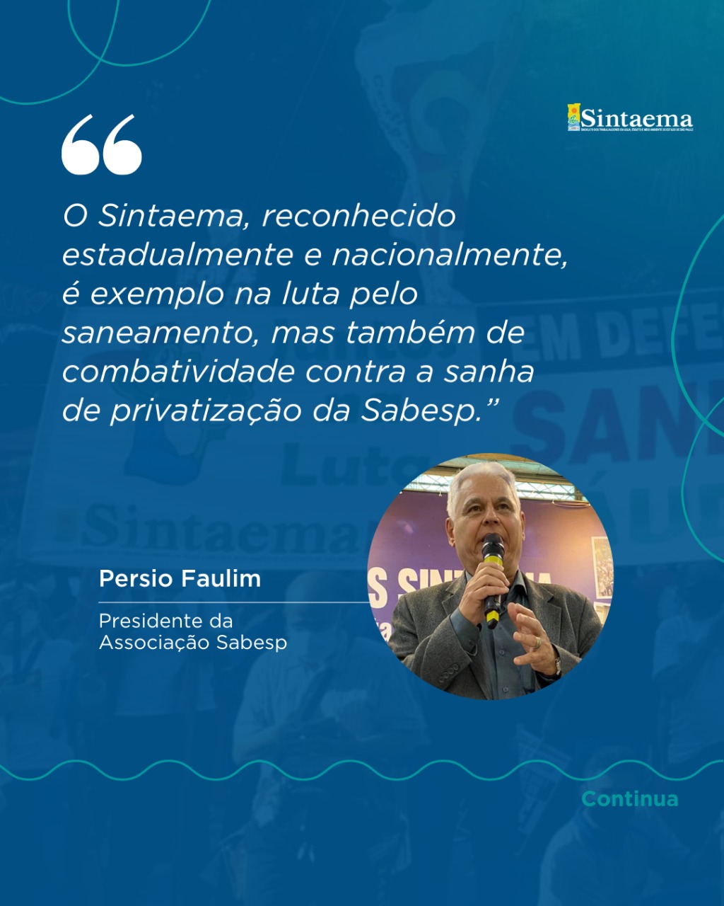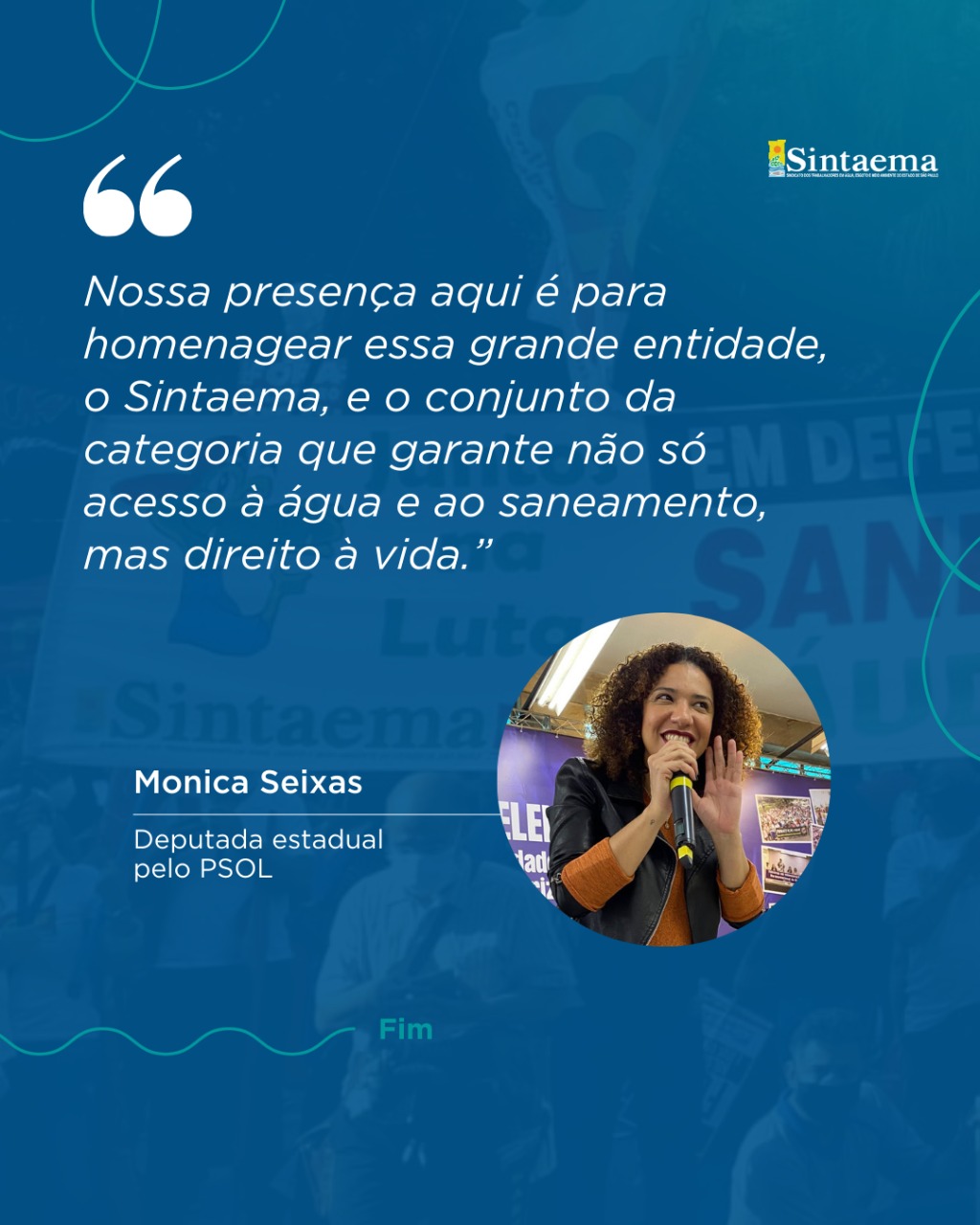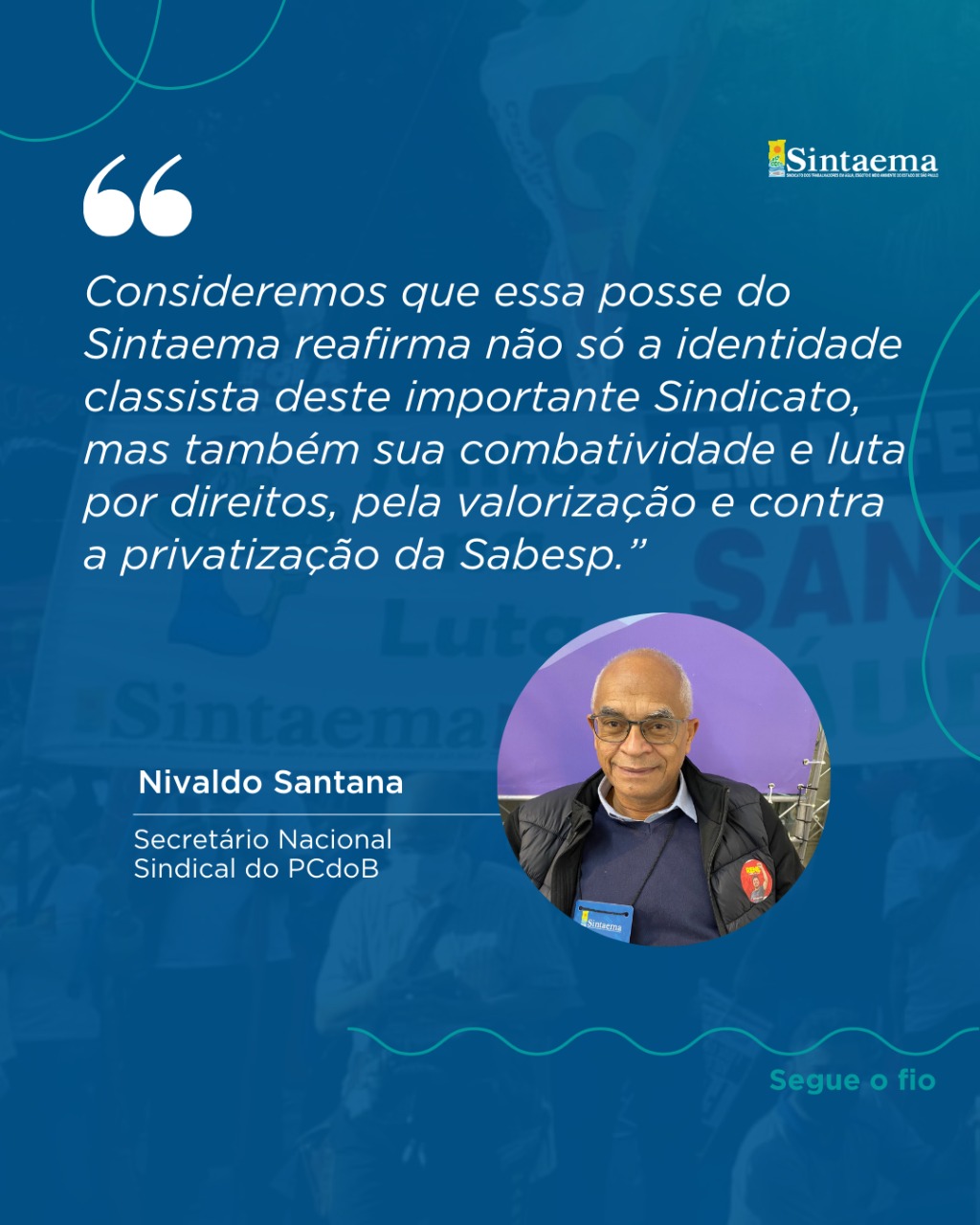 “47 anos de história que fizeram do Sintaema uma referência do movimento sindical no cenário nacional e que marchou e marcha na linha de frente das principais lutas em prol dos direitos da classe trabalhadora”.