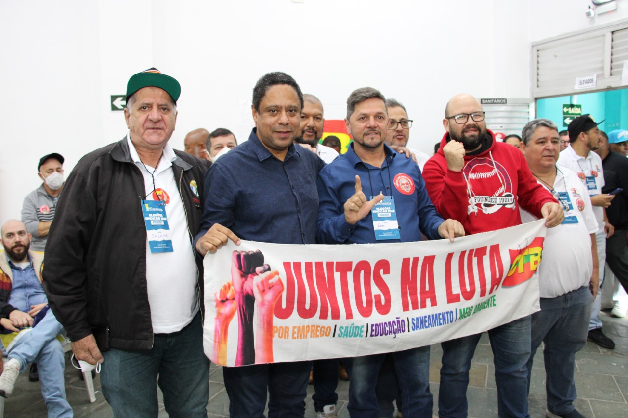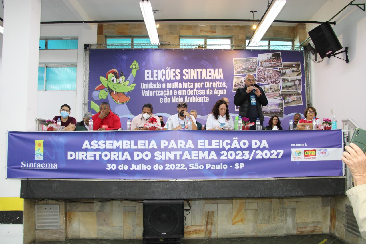 Após a eleição da nova direção, neste sábado (30), personalidades políticas e lideranças sindicais marcaram presença em ato político no Sintaema. Na pauta: a luta contra a privatização da Sabesp e contra o desmonte da CETESB e Fundação Florestal, o fortalecimento dos serviços públicos, a valorização dos trabalhadores e trabalhadoras e a mudança dos rumos políticos em São Paulo e no Brasil.