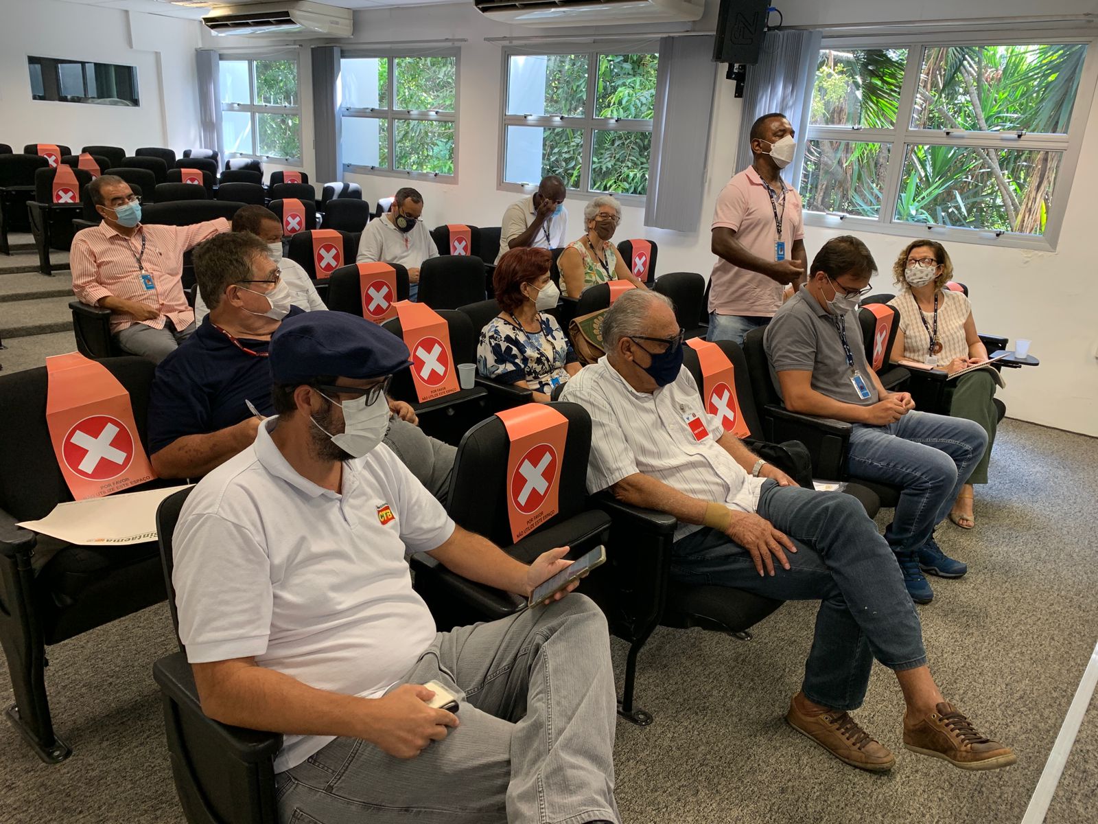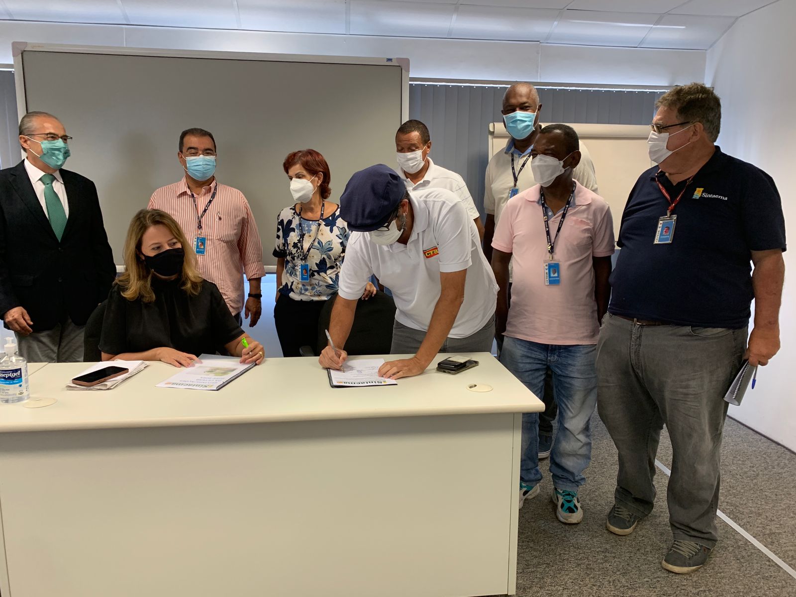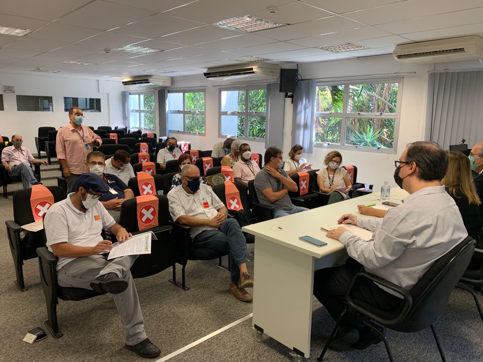 A reunião ocorreu no auditório Francisco Thomaz Van Acker e reuniu, além do Sintaema, representantes do Sindicato dos Químicos de São Paulo, do Sindicato dos Trabalhadores nas Indústrias Urbanas de Santos, Baixada Santista, Litoral Sul e Vale do Ribeira, Sindicatos dos Engenheiros do Estado de São Paulo e do Sindicato dos Advogados de São Paulo, que também entregaram suas pautas.