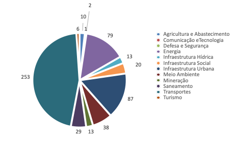 As informações constantes na página do PPI apresentam o total de 551 projetos de privatização até o momento, sendo que 283 deles já foram concluídos e 268 ainda estão em andamento. Os setores que mais concentram projetos são transportes (253), infraestrutura urbana (87) e energia (79), respondendo por 76% do total. O volume de investimentos previstos para os projetos aprovados durante os primeiros três anos deste mandato de Lula aponta para algo próximo a R$ 220 bilhões. O gráfico abaixo permite uma visualização de como estão distribuídos os itens do total.