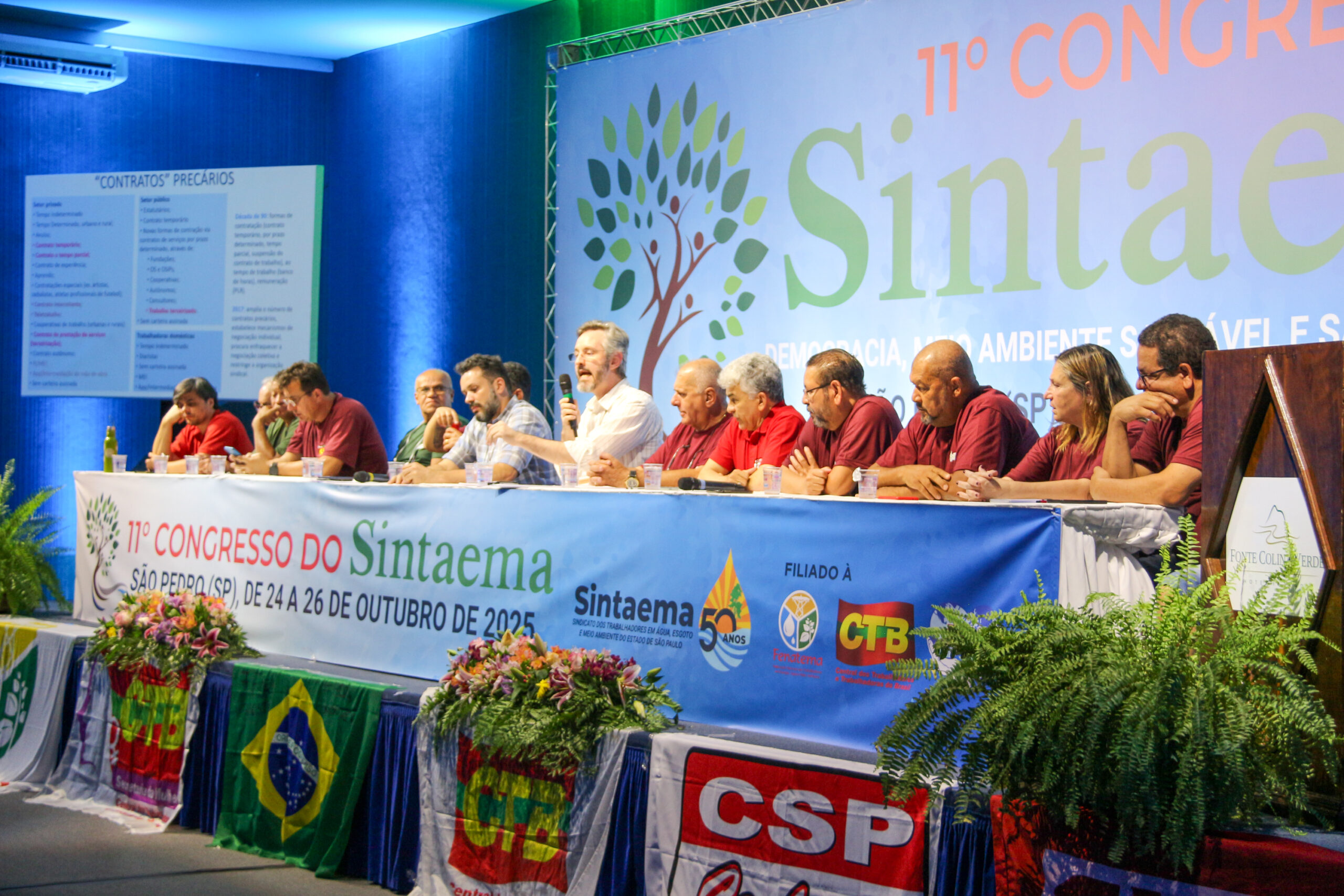 O segundo dia do 11º Congresso do Sintaema foi encerrado com ampla marcado por intensos debates sobre o tema “Mundo do Trabalho”, reunindo pesquisadores, sindicalistas e lideranças de diversas áreas para refletir sobre as transformações em curso nas relações trabalhistas e o papel dos trabalhadores na construção de um novo projeto nacional de desenvolvimento.