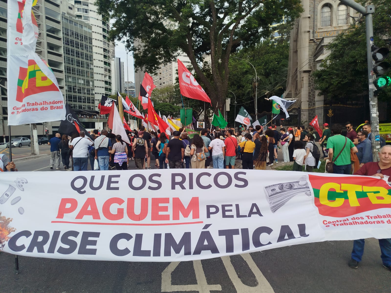 Na capital paulista, o Sintaema e a CTB marcaram presença na Marcha Global pelo Clima, que reuniu movimentos sociais, coletivos ambientais, sindicatos, cientistas, juventudes, povos indígenas e cidadãos conscientes.