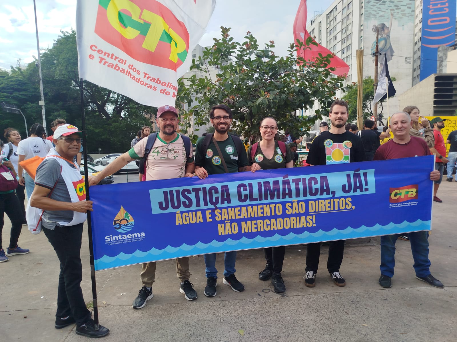 O Sintaema esteve nas ruas neste domingo (16), ao lado da CTB e de milhares de lutadores e lutadoras do povo, reafirmando seu compromisso histórico com a defesa do meio ambiente, da água, da vida e do clima. Participamos da Marcha Global pelo Clima tanto em São Paulo (SP) quanto em Belém (PA), somando vozes à mobilização internacional que exige ações concretas e urgentes diante da crise climática.