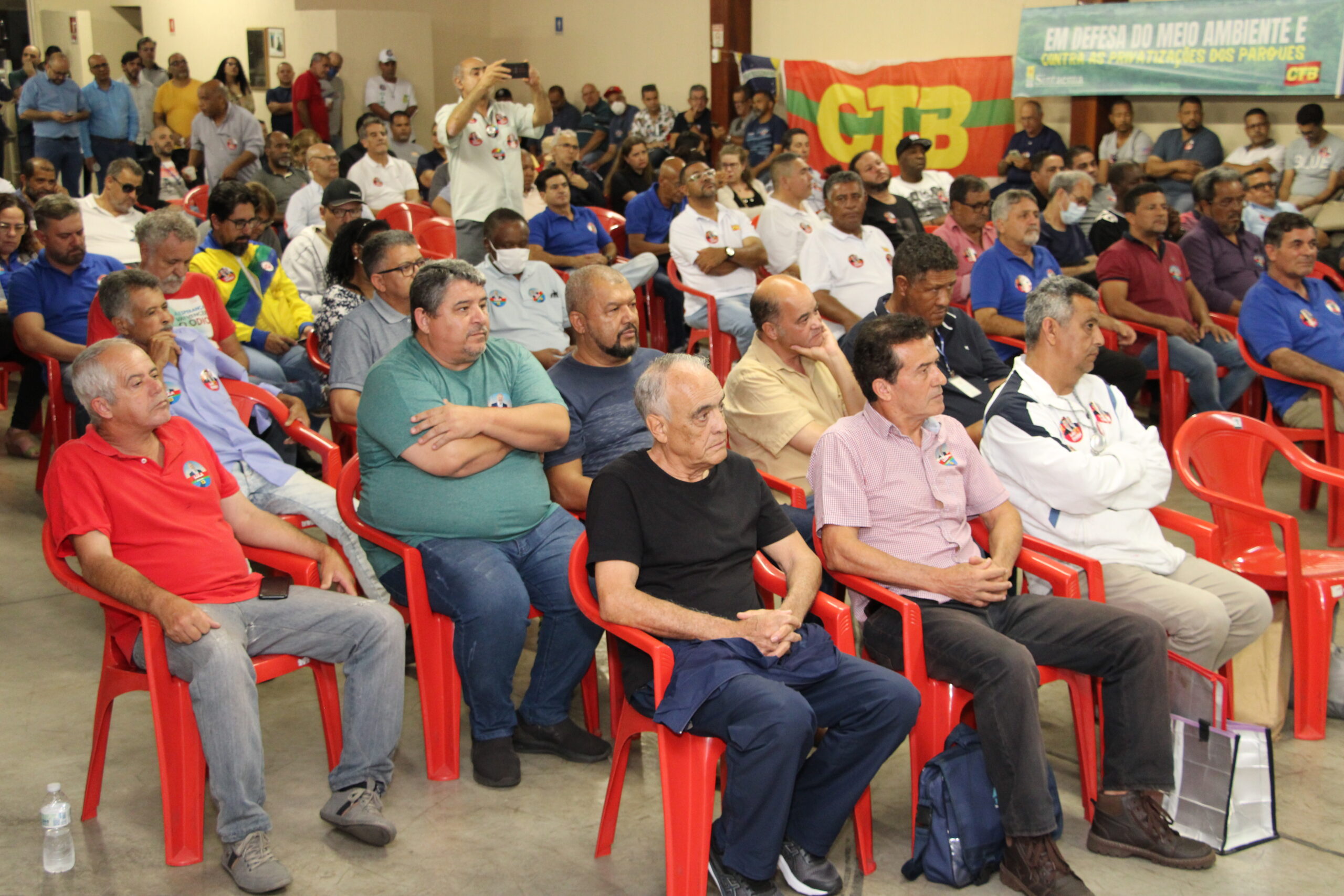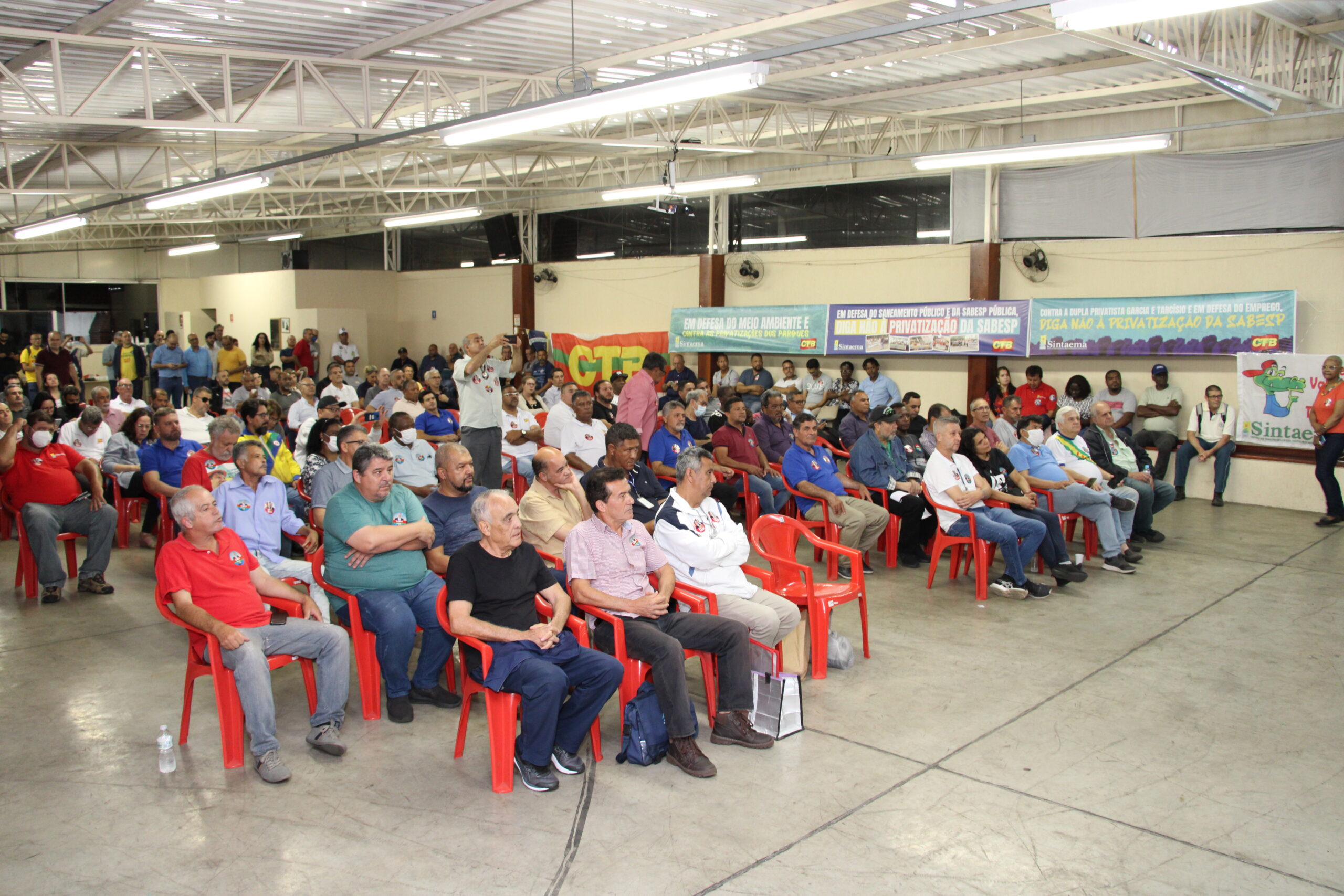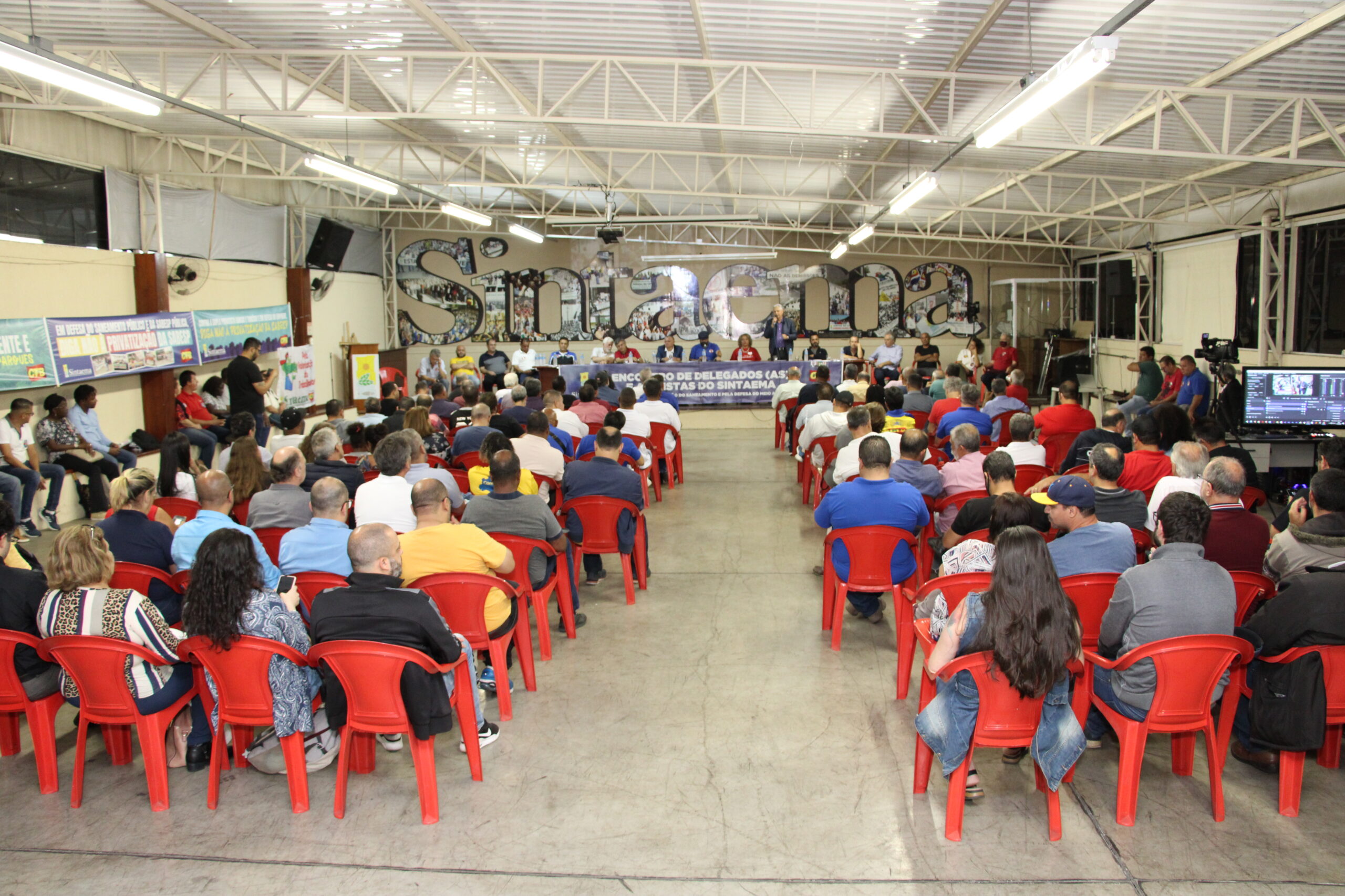 Ocorreu nesta quinta (13), na sede do Sintaema, o Encontro de Delegados e Delegadas do Sintaema, na pauta a organização da luta contra o candidato de Jair Bolsonaro, Tarcísio de Freitas, que já confirmou que tem como meta a privatização da Sabesp e desmontar os demais órgãos estatais – como CETESB e Fundação Florestal – que atuam com o meio ambiente em São Paulo.
