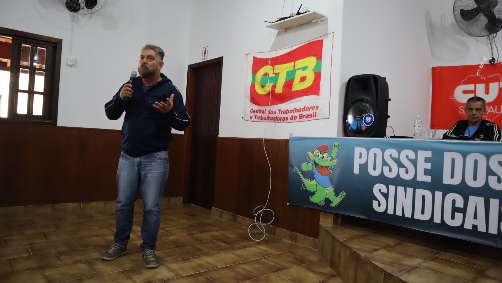 Presente na solenidade de posse, o ex-presidente do Sintaema e dirigente nacional da CTB, Nivaldo Santana, falou do papel estratégico do delegado sindical como elo central entre a base e o Sindicato.