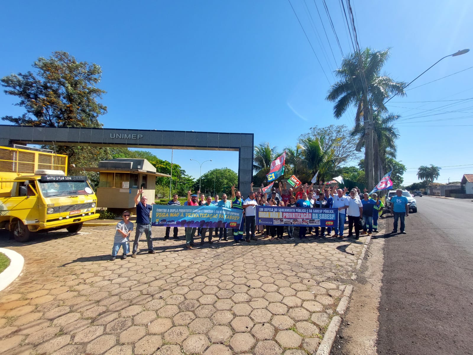 Na manhãã desta quarta (26), a direção do Sintaema desembarcou na cidade de Lins, na região centro-oeste do estado de São Paulo, e realizou mais um ato no qual alertou os funcionários e a população sobre o que está em jogo caso a Sabesp seja privatizada.