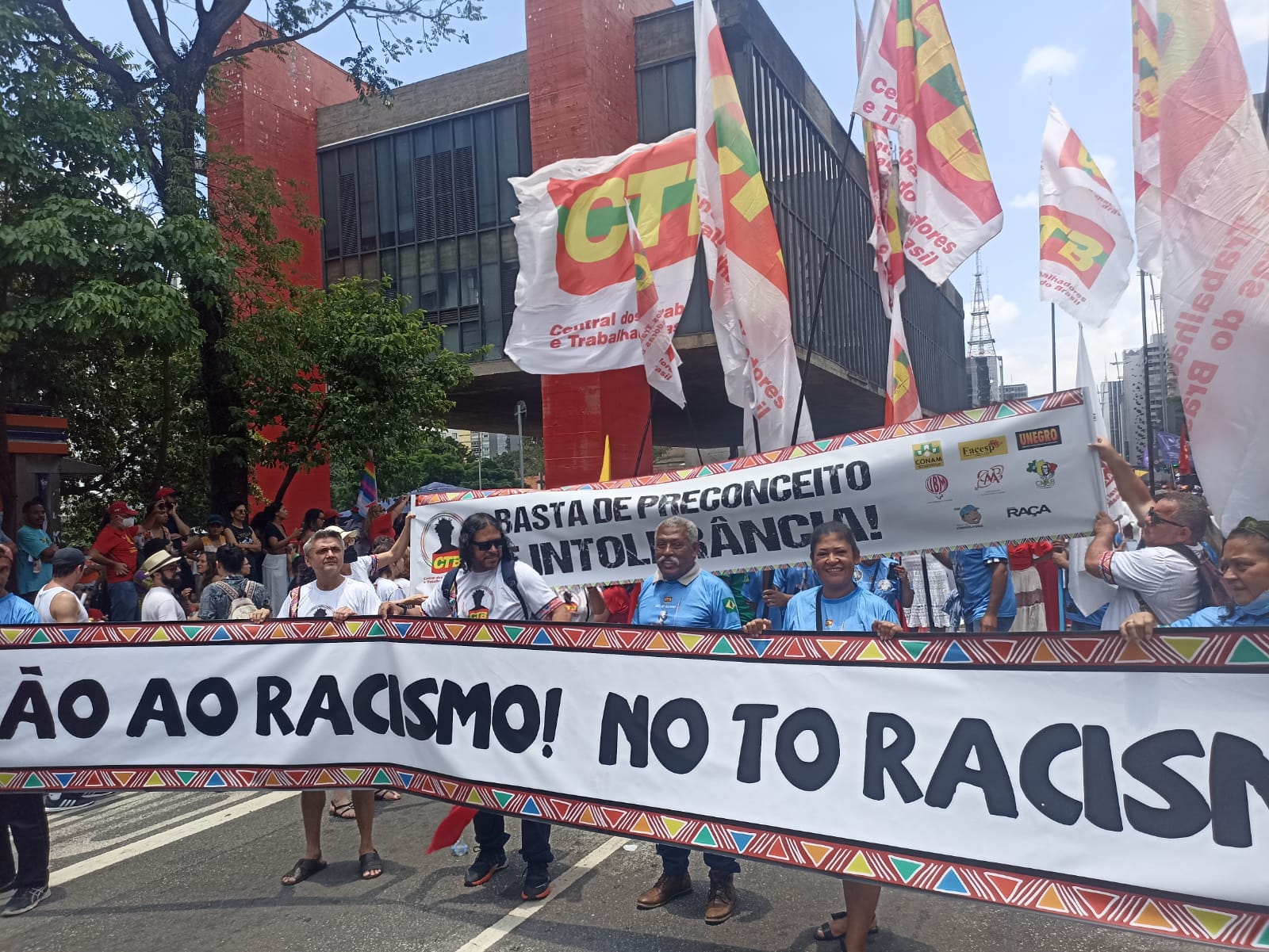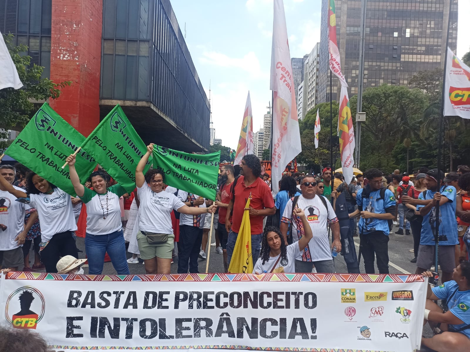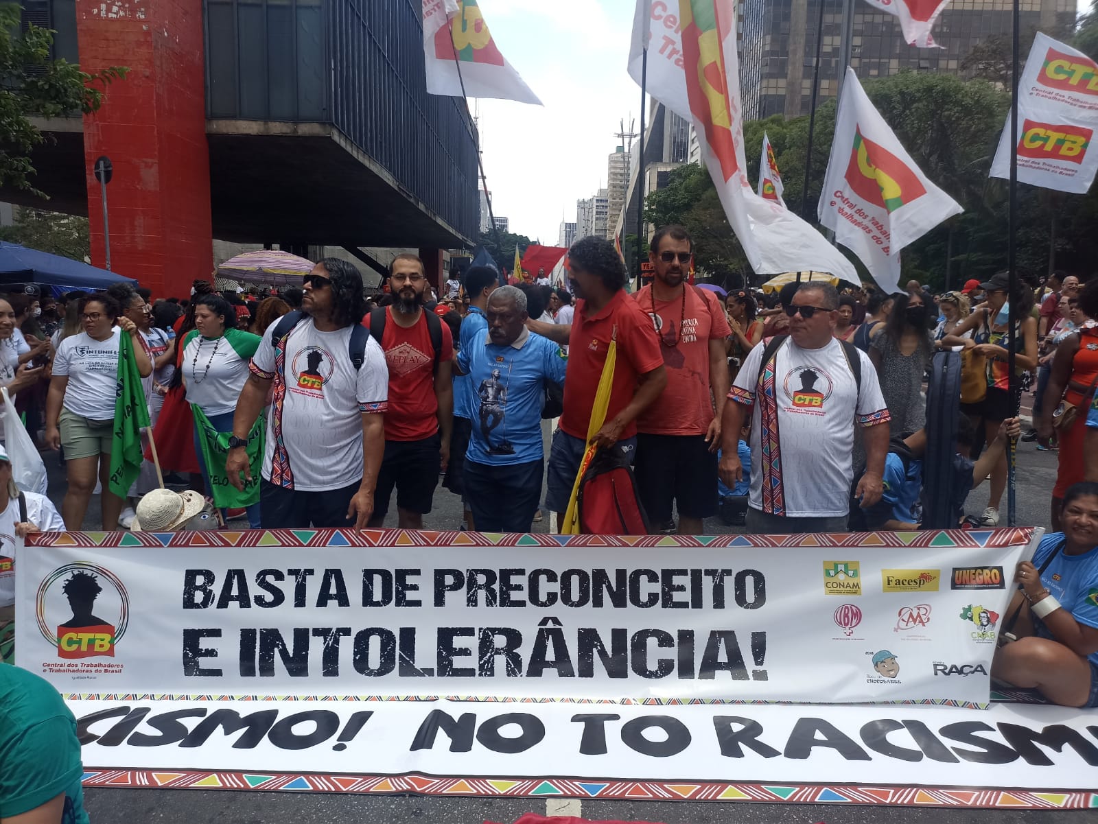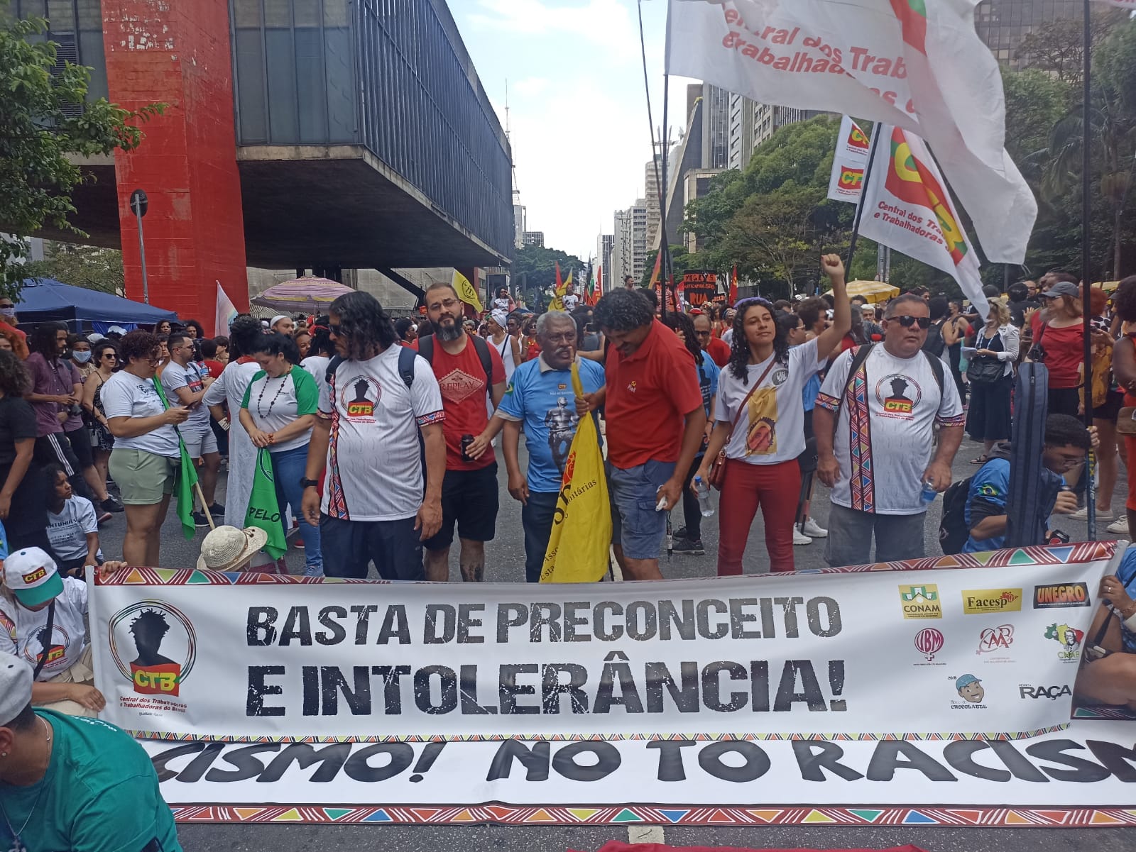 A CTB e o Sintaema participaram neste domingo (20) da 19ª Marcha da Consciência Negra foi marcada, em São Paulo, que se concentrou foi no Museu de Arte de São Paulo (Masp), na Avenida Paulista, com caminhada até as escadarias do Teatro Municipal e teve como tema “Por um Brasil e São Paulo com Democracia e Sem Racismo”.