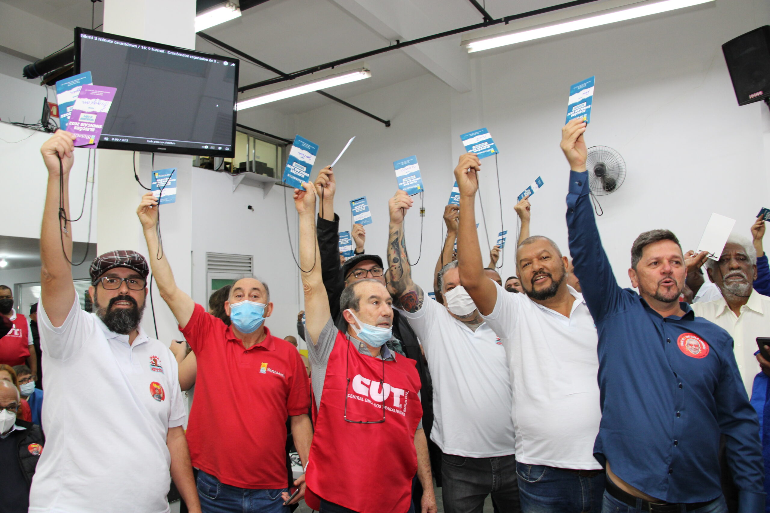 Por aclamação da categoria e em clima de festa, nova direção do Sintaema é eleita neste sábado (30), em assembleia na sede do Sintaema, que reuniu centenas de trabalhadores e trabalhadoras que elegeram por unanimidade a Chapa “Unidade e Muita Luta” para a gestão 2023-2027.