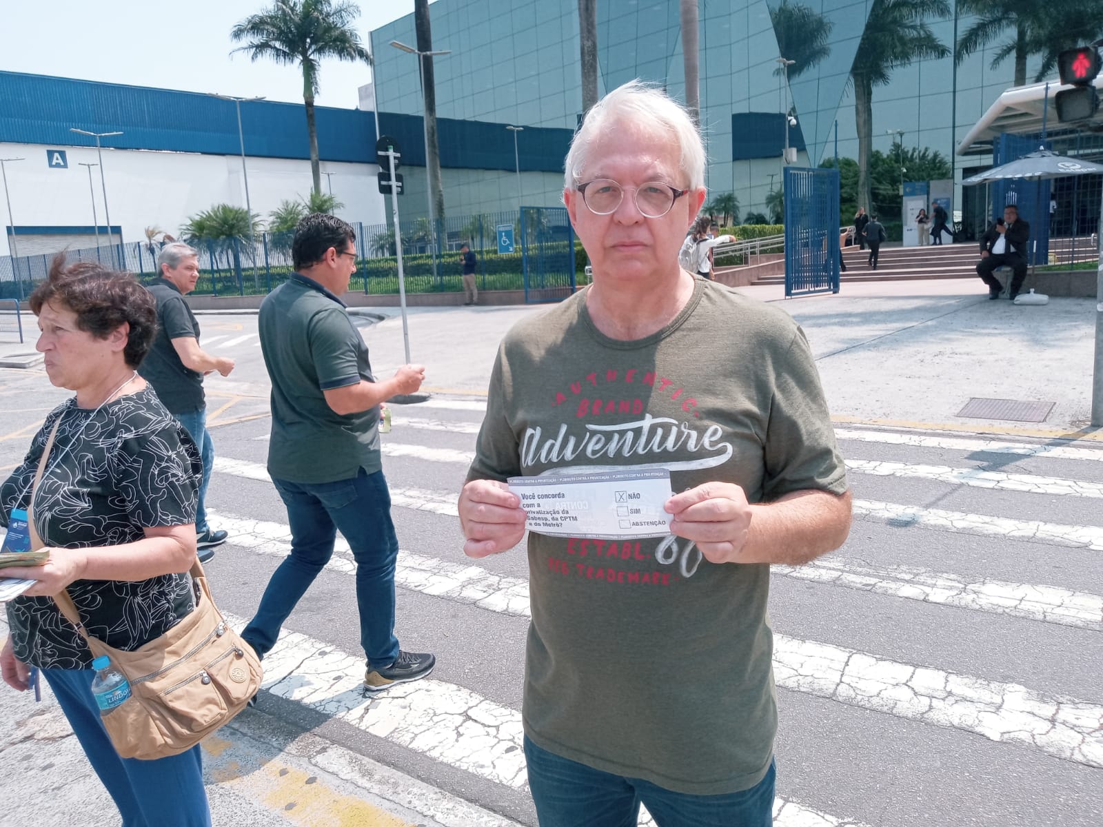 O Sintaema esteve presente nesta quarta (4) e quinta-feiras (5) na Feira Nacional do Saneamento (Fenasan). A direção do sindicato levou urna do plebiscito e dialogou com os participantes sobre a luta contra a privatização da Sabesp, do Metrô e da CPTM.