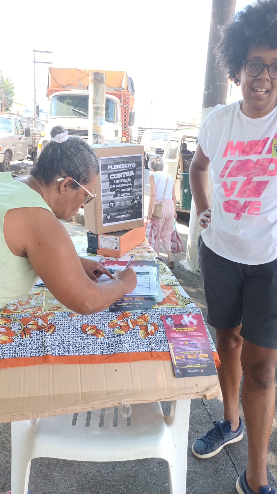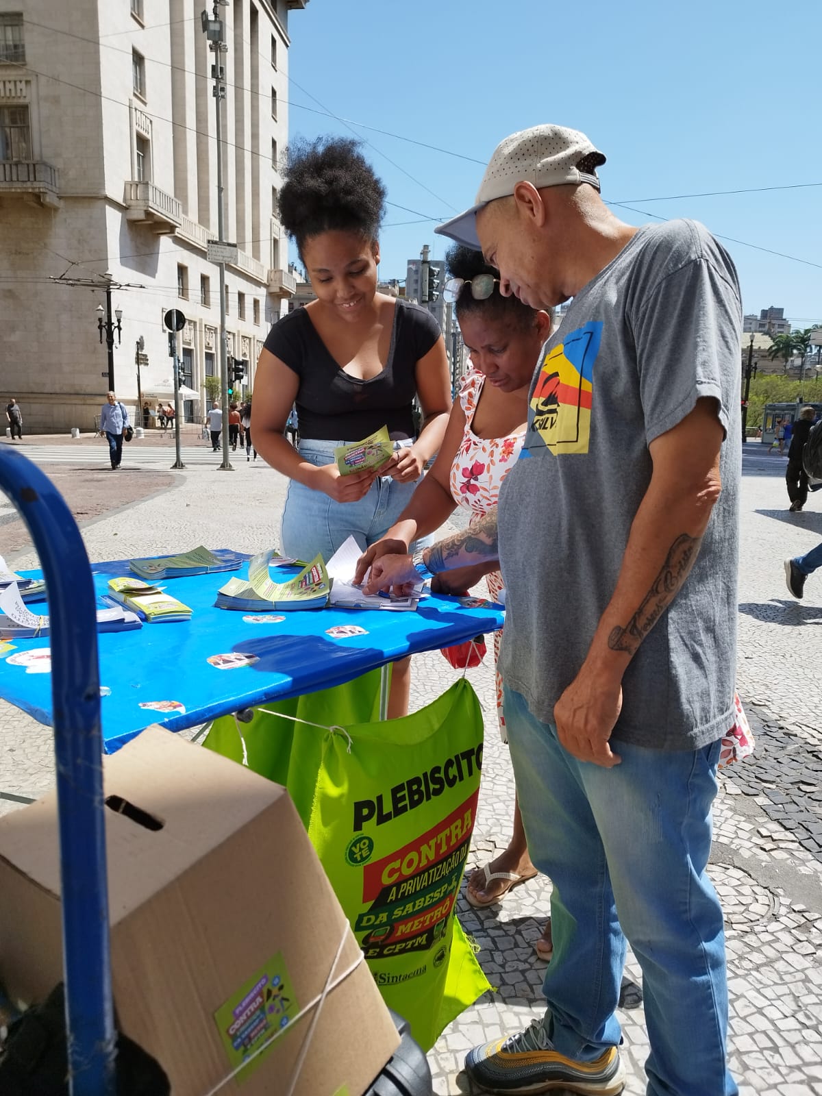 O Sintaema em parceria com movimentos sociais e sindicais está nos bairros de São Paulo recolhendo votos para o plebiscito contra a Privatização da Sabesp, Metrô e CPTM. A panfletagem também continua em todas as regiões da cidade. Nesta semana, houve diálogo com a população nas estações de Barueri, Itapevi, Antonio João e Jandira.