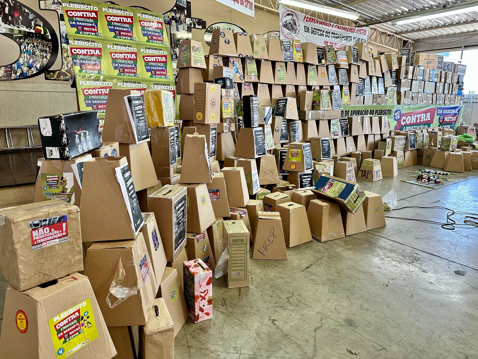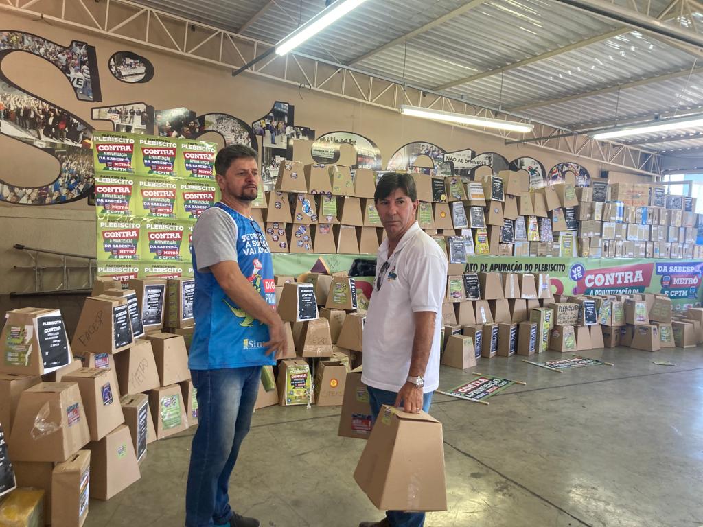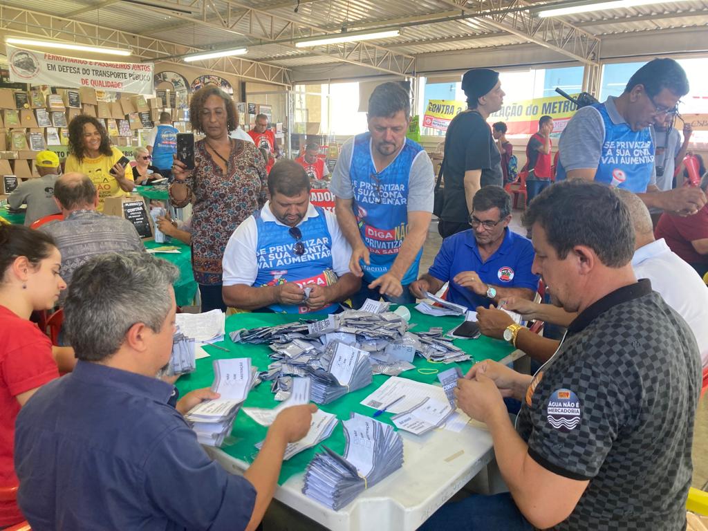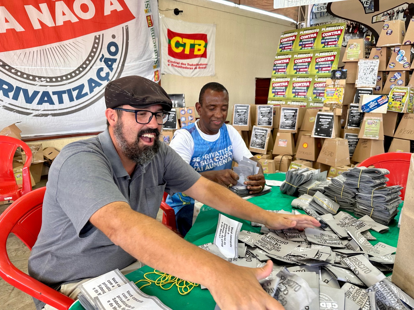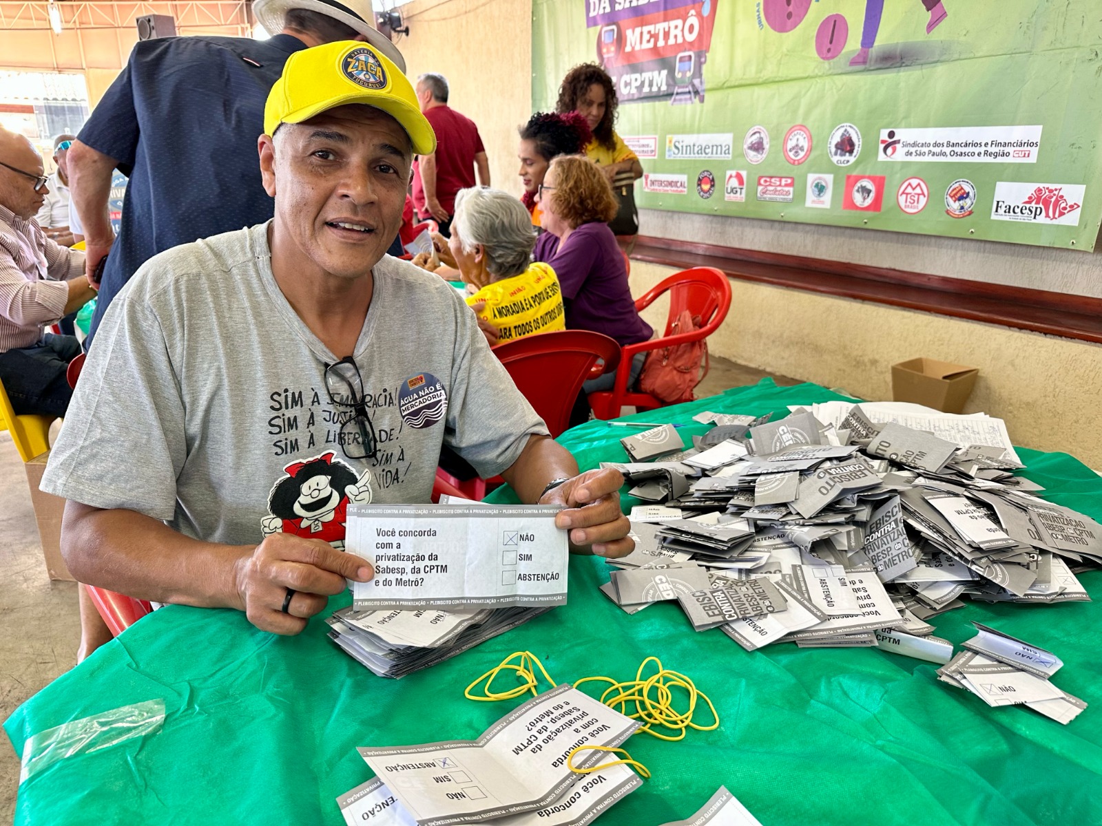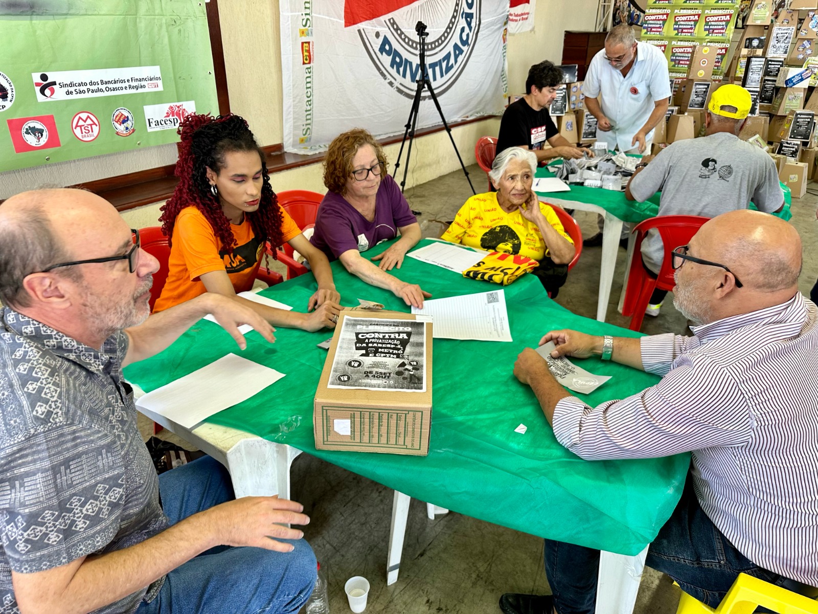 Trabalhadores (as) da Sabesp, Metrô e CPTM iniciaram nesta terça-feira (7), na sede do Sintaema, a contagem dos votos do plebiscito popular que consultou a população sobre o projeto de privatização dos serviços essenciais no estado de São Paulo.