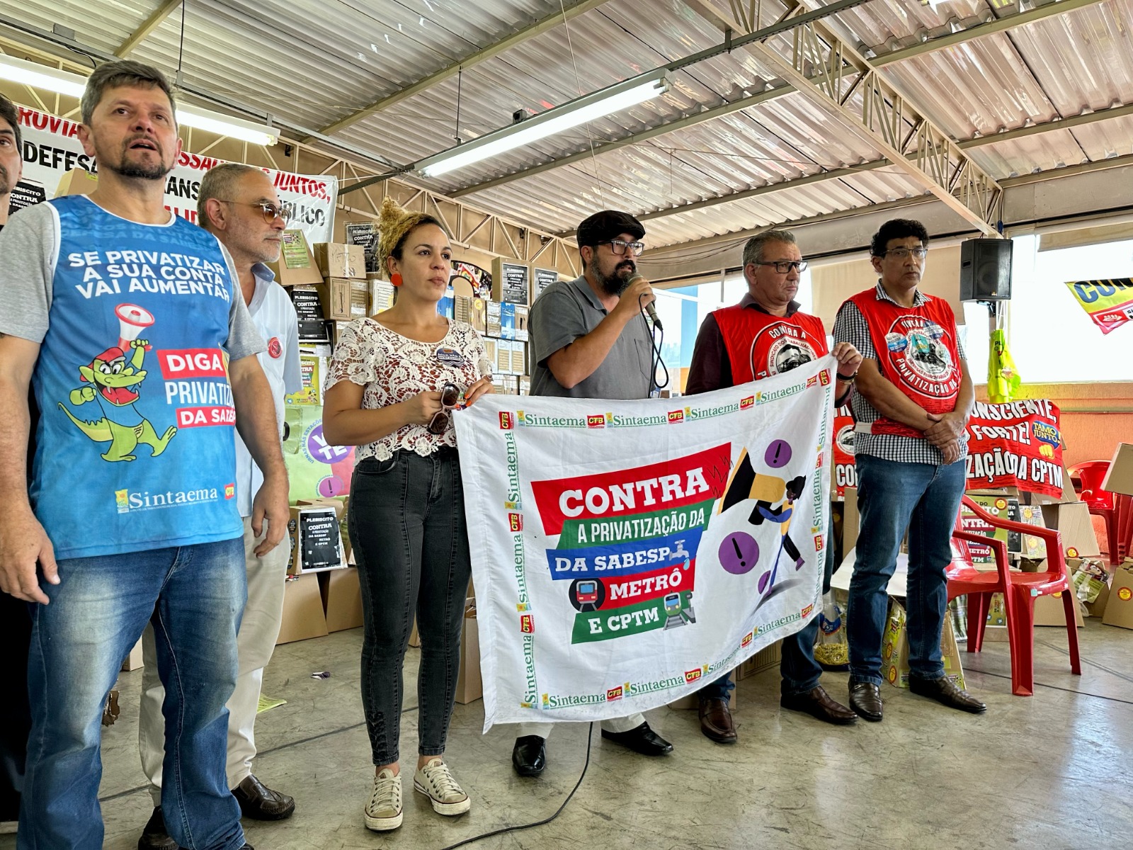 Eluiz, presidente do sindicato dos Ferroviários de São Paulo, lembrou que os trabalhadores desafiaram o governo de Tarcísio de Freitas a fazer esse plebiscito. “Como ele não fez, nós assumimos esse papel e hoje vamos demonstrar para o governo que o povo não quer a privatização nem da Sabesp, nem do Metrô e nem da CPTM”, completou o dirigente ferroviário.