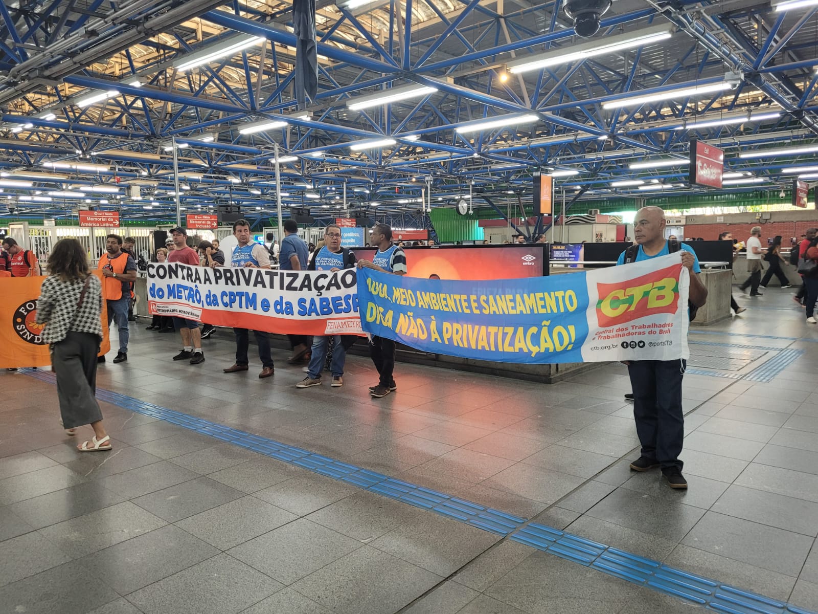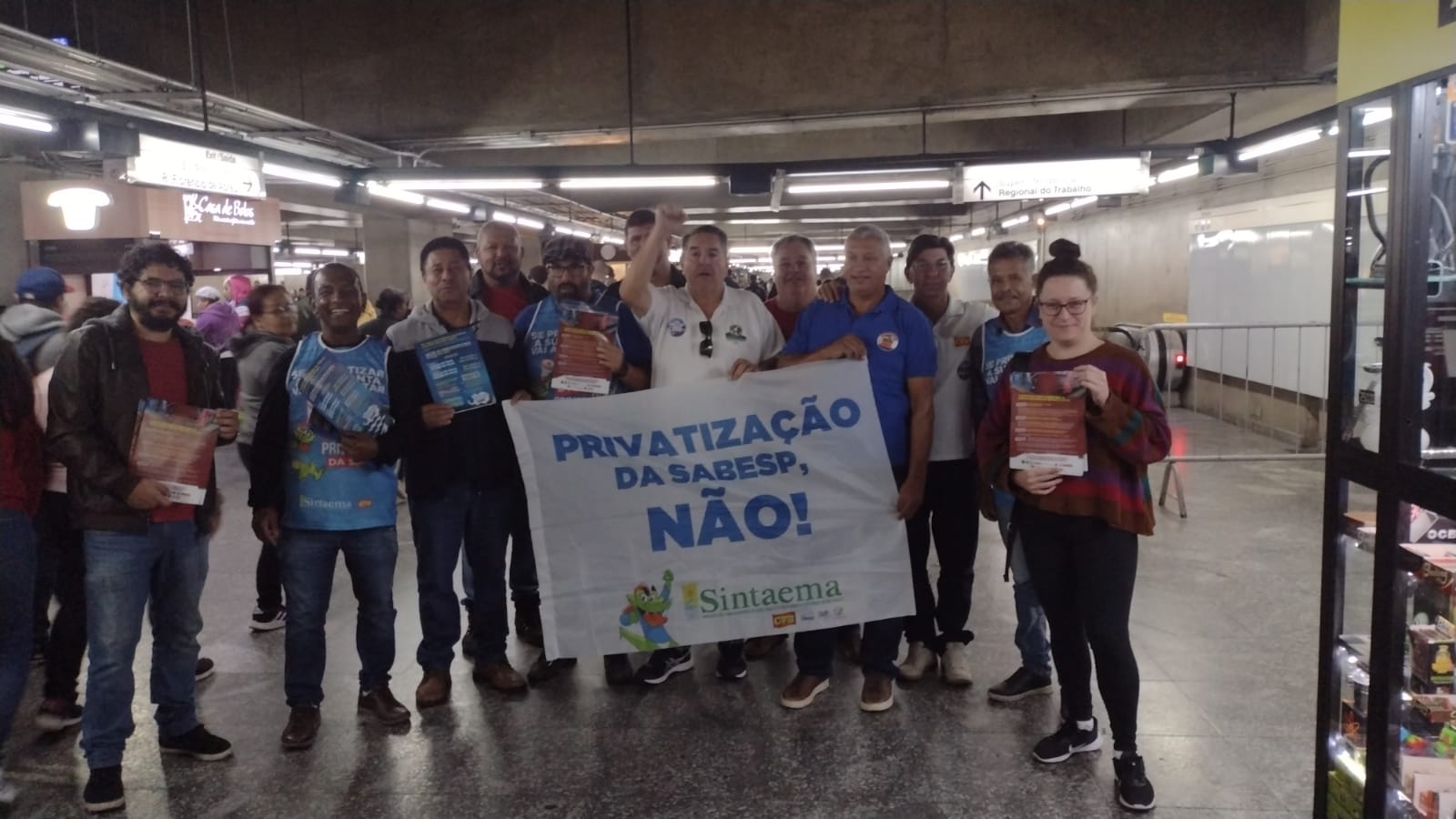 Nesta quarta-feira (2) o Sintaema participou de um ato público na estação Barra Funda do Metrô, na zona oeste da capital paulista. Em conjunto com metroviários e trabalhadores (as) da CPTM, a direção do sindicato reforçou a defesa das empresas públicas.
