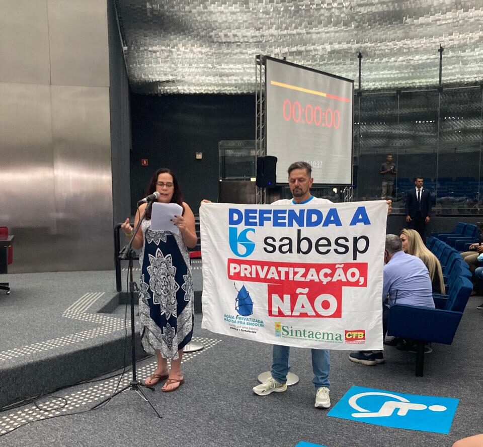 “Esta audiência pública é mais um ato de um espetáculo farsesco, promovido pelo governo do estado para vender a SABESP. Venda autorizada por uma Lei inconstitucional aprovada pela Assembleia Legislativa”, afirma o texto.
