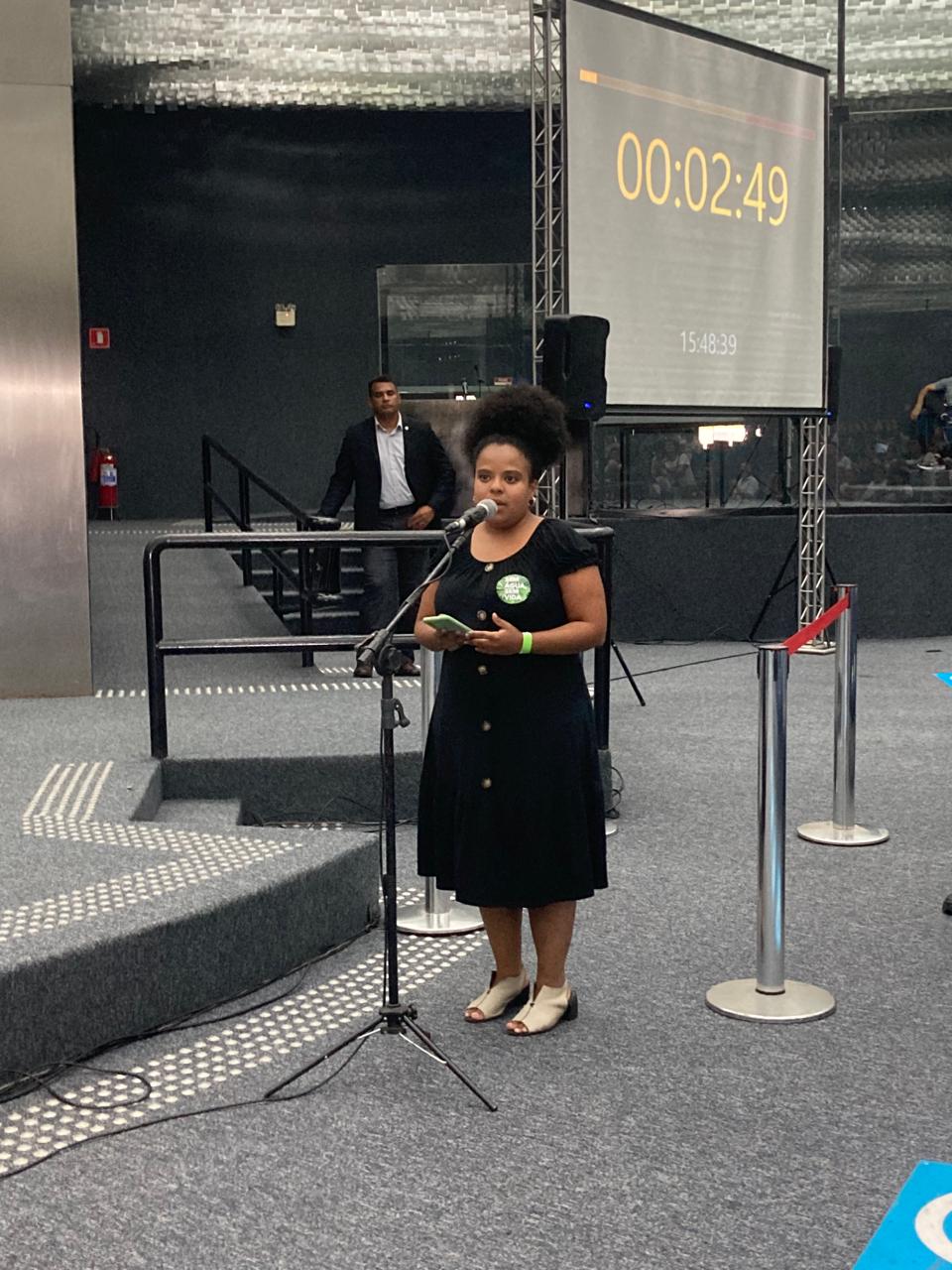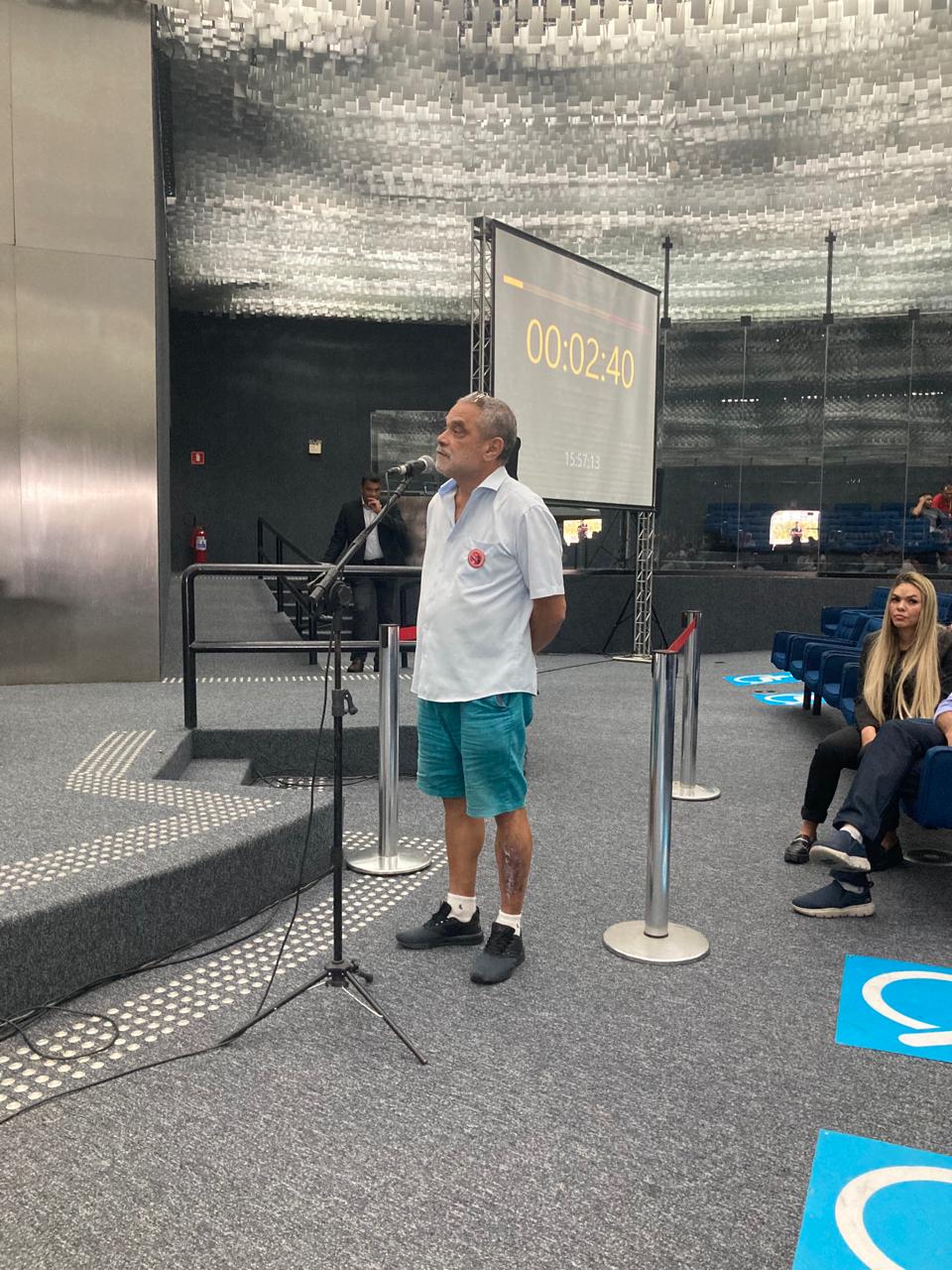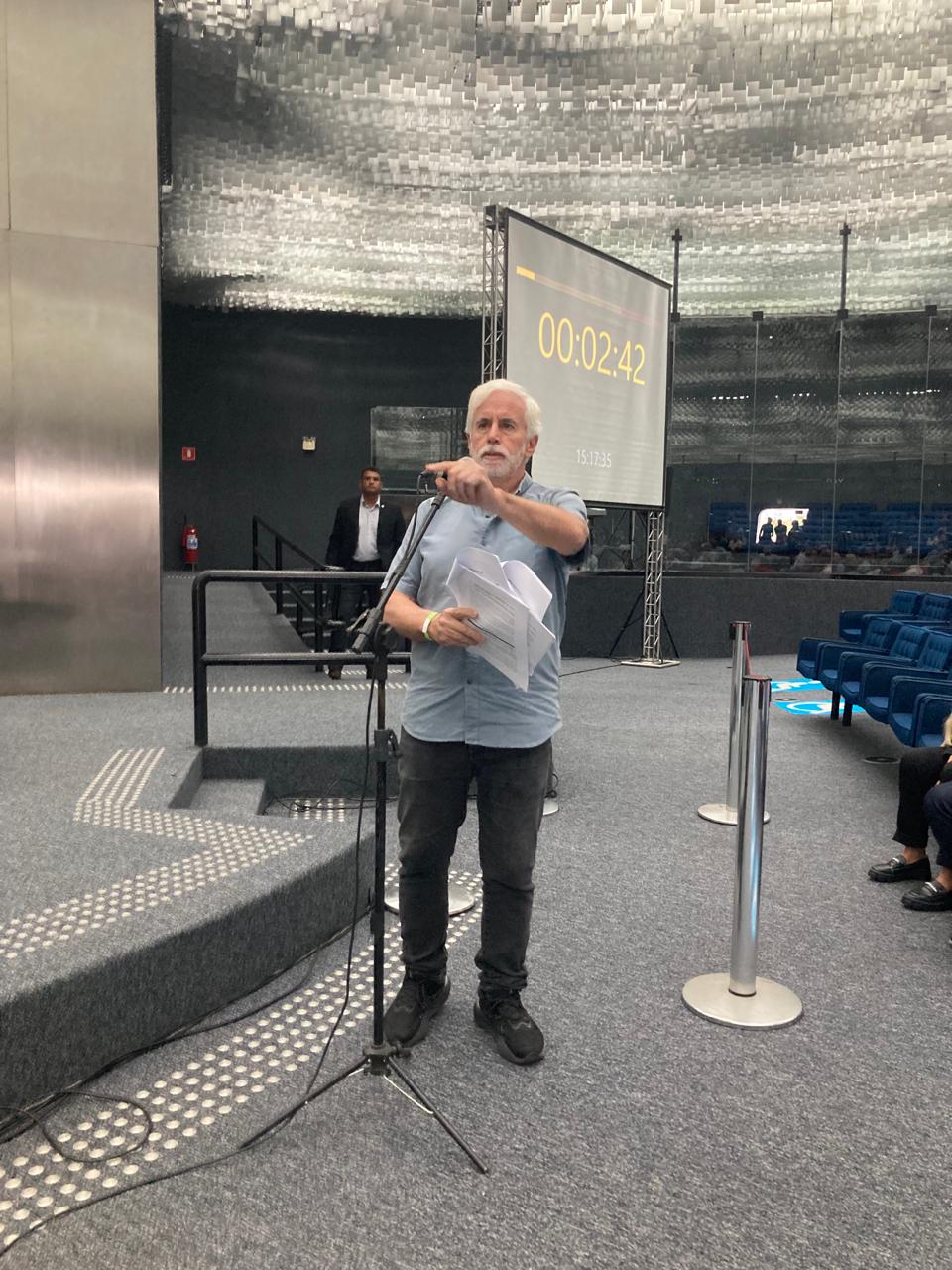Em três minutos definidos pela organização do evento, o Sintaema leu o manifesto “Privatização da Sabesp: Farsa ou Tragédia? em que o sindicato e o Fórum de Entidades criticam a pressa do governo do Estado em realizar as audiências.