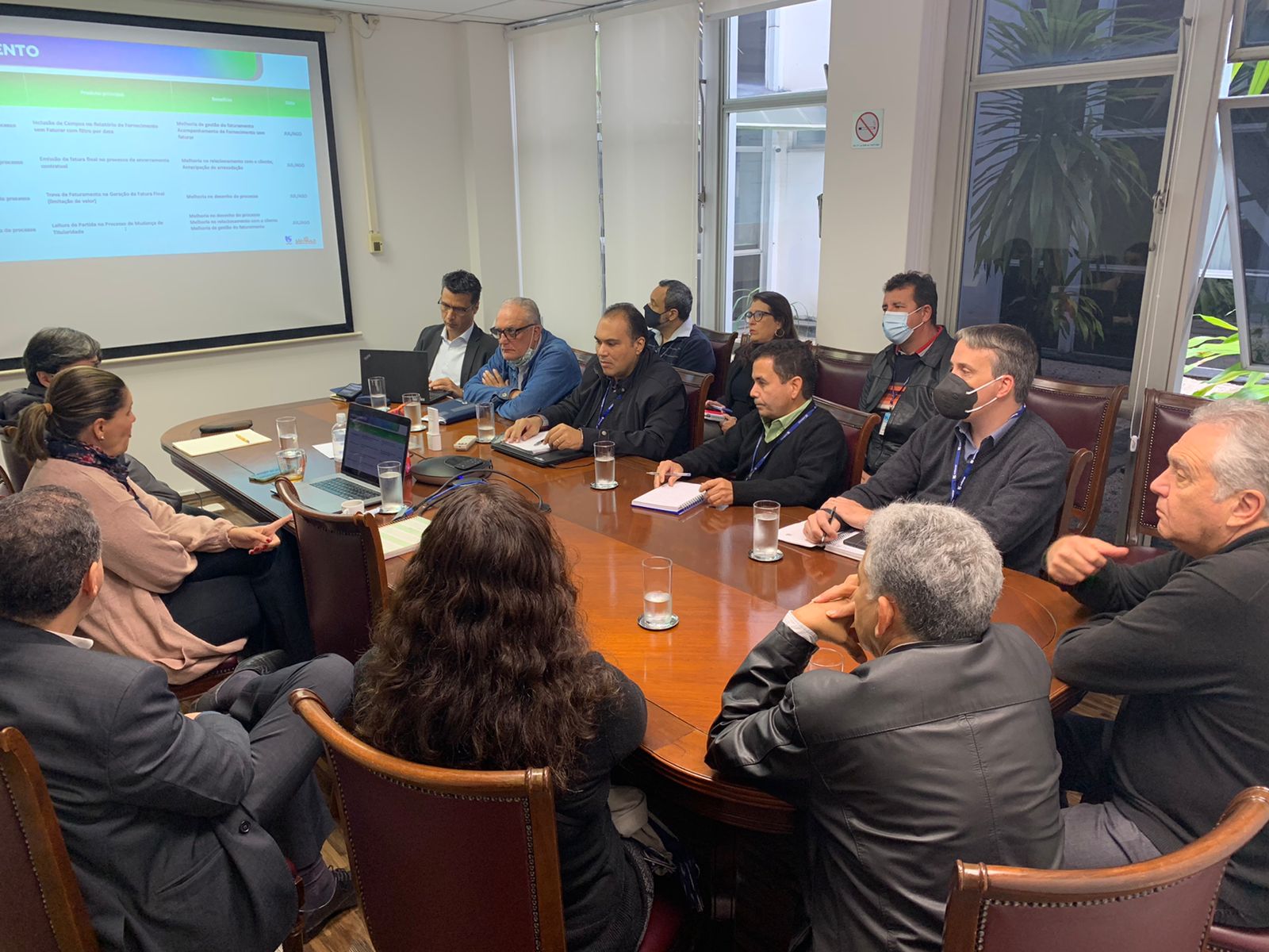 Na manhã desta quinta (11), a direção do Sintaema se reuniu com o superintendente de Gestão de Pessoas da Sabesp, Nilton João dos Santos; a coordenadora de Relações Trabalhistas, Cristina Russo; e a coordenadora do projeto Net@, Samanta Souza; para discutir as ações do NET@ Suite e o balanço do Programa de Participação nos Resultados (PPR) na Sabesp até o momento.