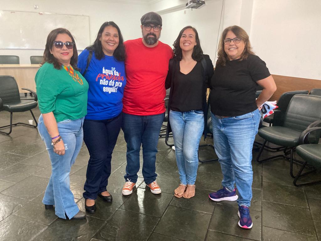 A luta contra a privatização do saneamento no Brasil foi o tema do encontro realizado nesta sexta-feira (20) entre a direção do Sintaema e dirigentes da CUT da área do saneamento de Minas Gerais, Sergipe e Rio Grande do Sul. A reunião ocorreu na sede do Sintaema.