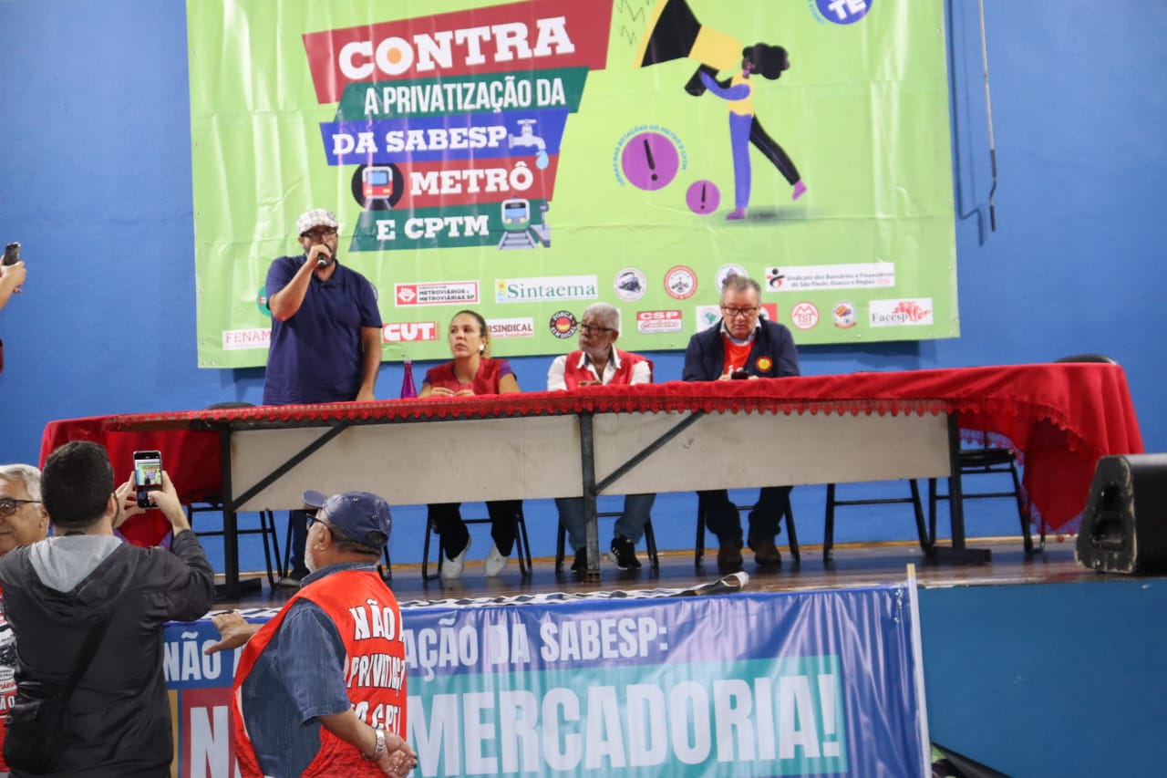 A partir da meia-noite desta terça-feira (3) trabalhadores da Sabesp, Metrô e CPTM estarão em greve contra a privatização dos serviços essenciais em São Paulo. A decisão simbólica ocorreu nesta segunda-feira (2), na quadra do sindicato dos bancários, que recebeu o ato de organização para a greve.